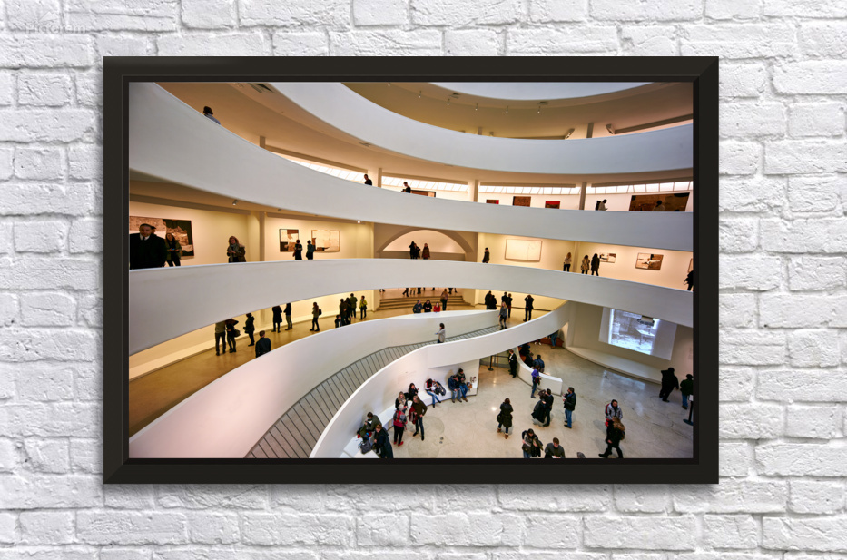 "People walk through the spiraled structure of Solomon R" dans une impression encadrée.
