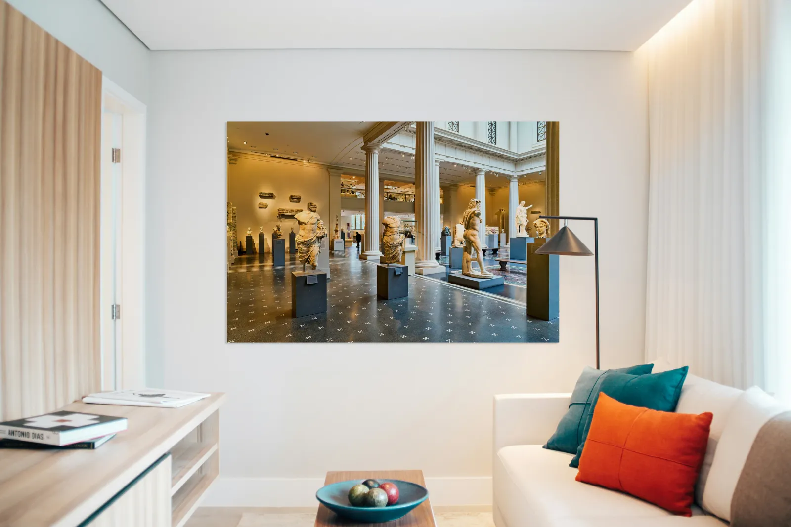 People walk through the Leon Levy and Shelby White Court observing sculptures in the Greek and Roman galleries at the Metropolitan Museum of Art.