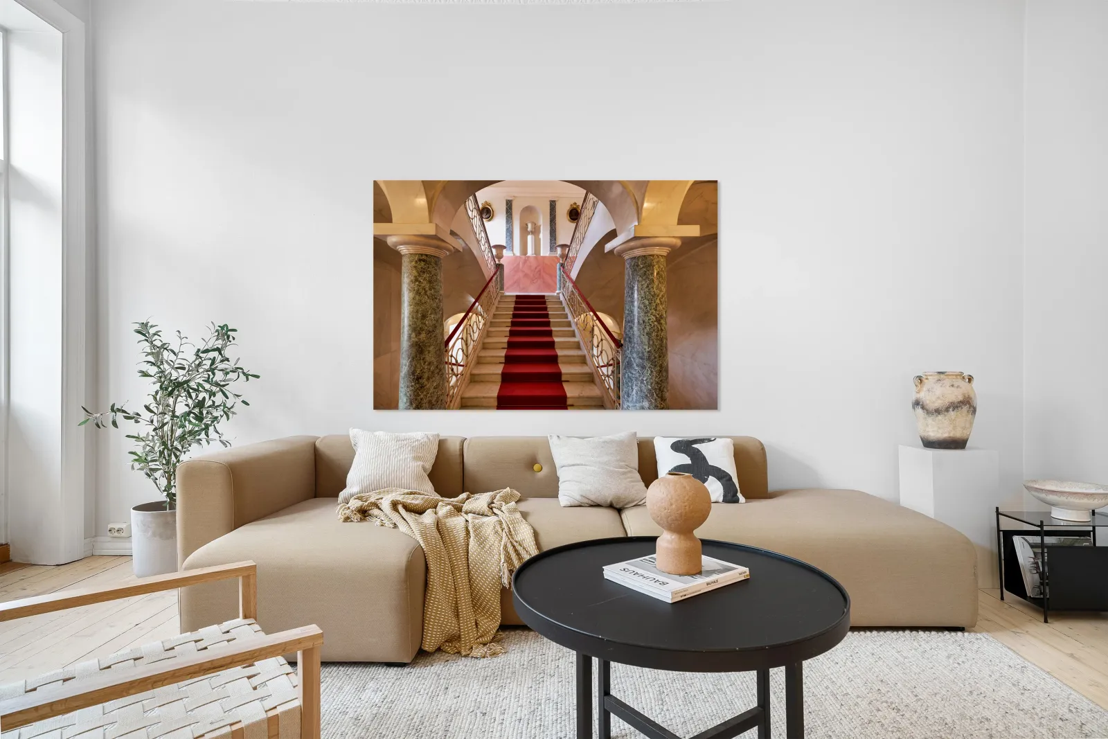 Imprimé jusqu’au bord et prêt à être accroché, avec 4 cylindres (entretoises) en aluminium ( les vis murales sont incluses )