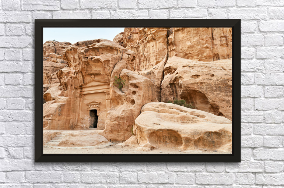 Visitors walk through Little Petra in Wadi Musa. The historic site shows ancient carvings and structures in the rock formations.