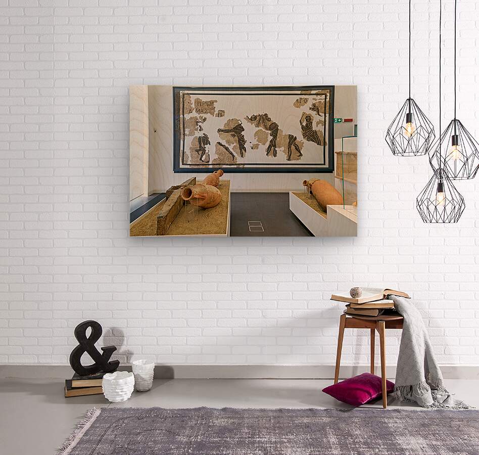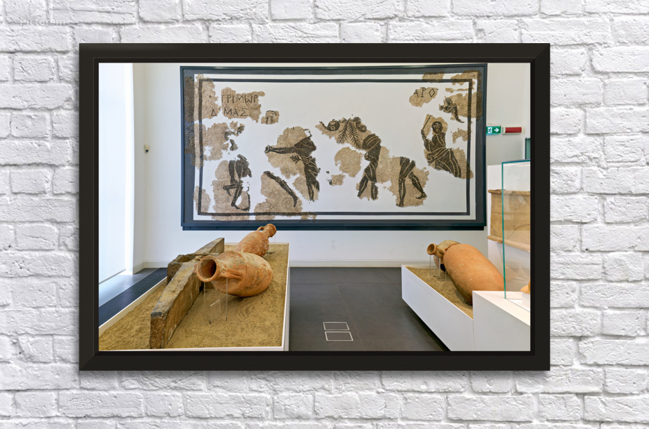 Visitors look at pottery and mosaic art inside the National Museum of Magna Grecia in Reggio Calabria Italy. The museum houses ancient Greek history.