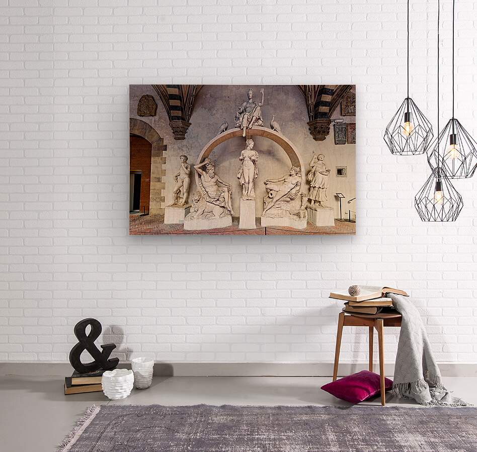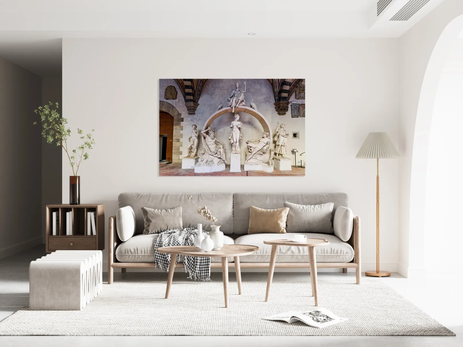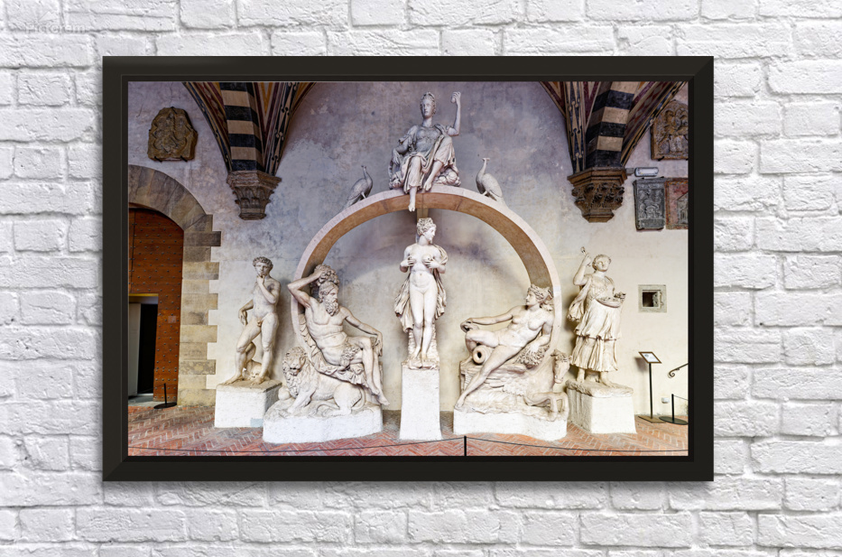 Visitors observe sculptures by Bartolomeo Ammannati in Museo Nazionale del Bargello. This collection showcases art from 1556 to 1561 in Florence.