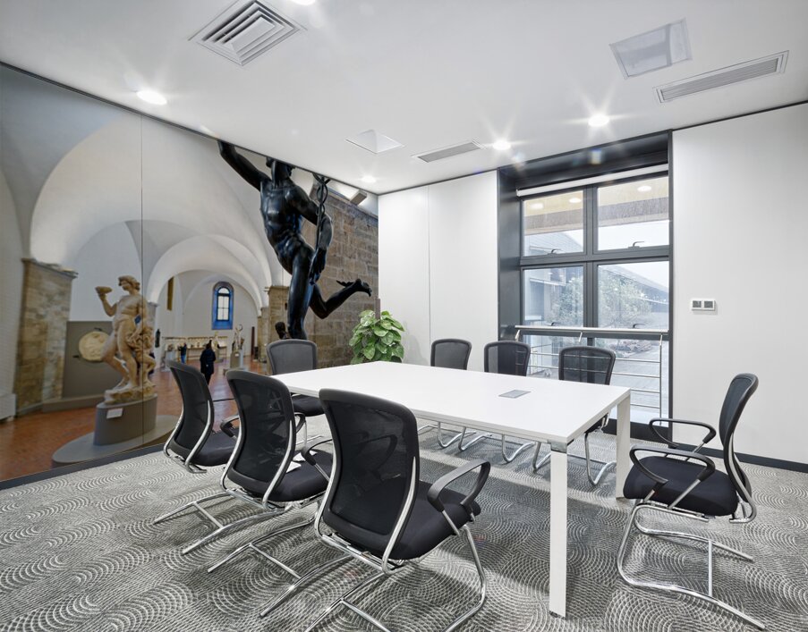 Visitors explore classic sculptures at Museo Nazionale del Bargello in Florence. The museum features various historical art pieces and collections.