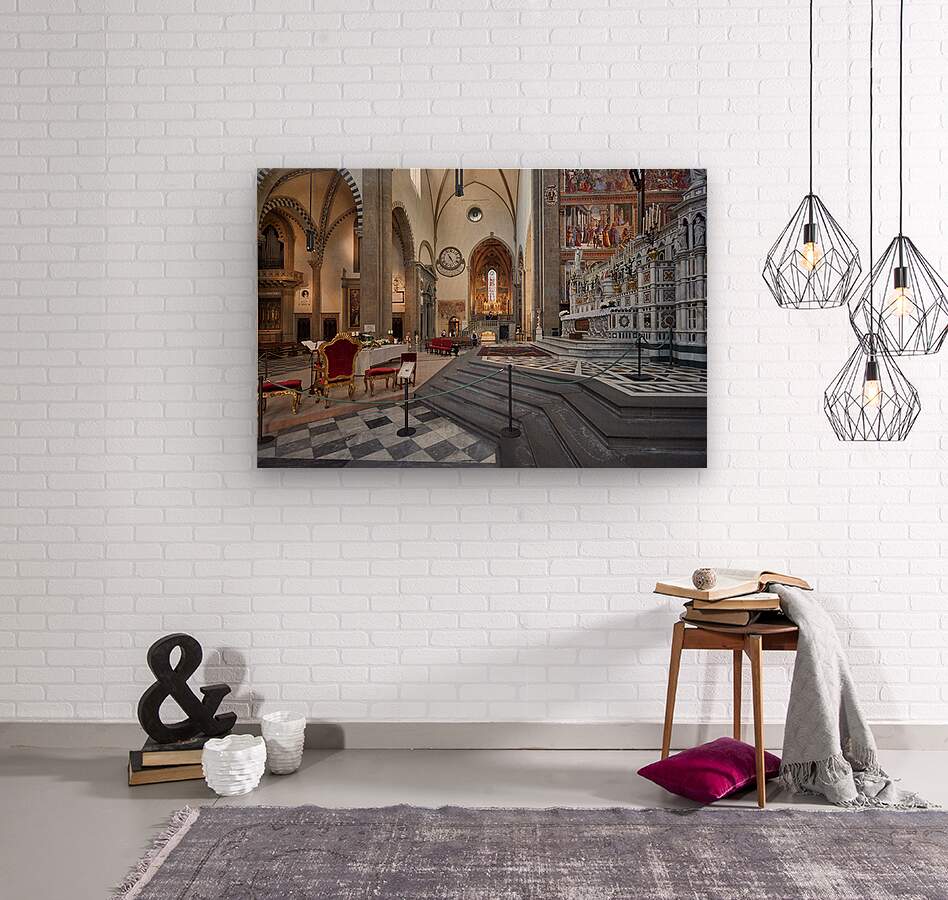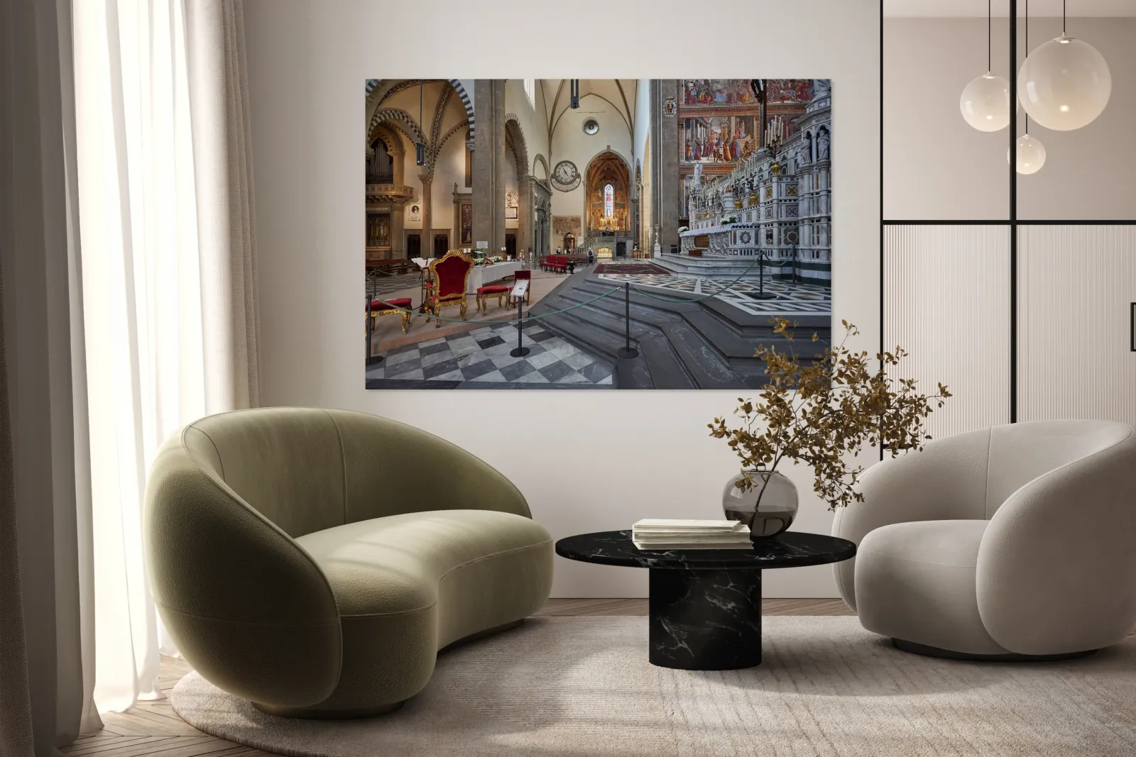 People explore Santa Maria Novella Church in Florence. The interior shows art architecture and history during a busy day of visitors.