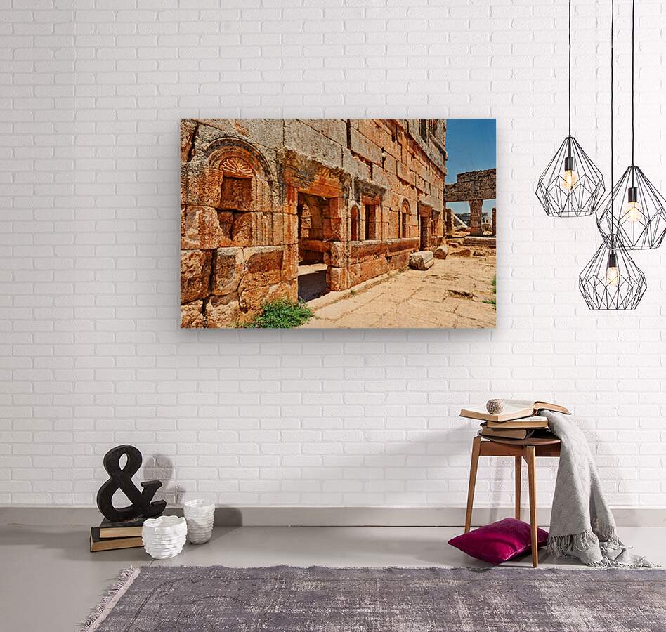 Visitors walk through the well-preserved ruins of Serjilla an ancient site in northwestern Syria showcasing its historical stone structures.