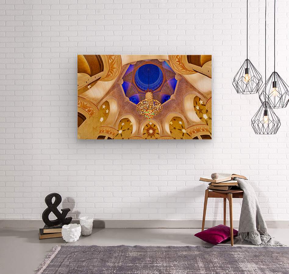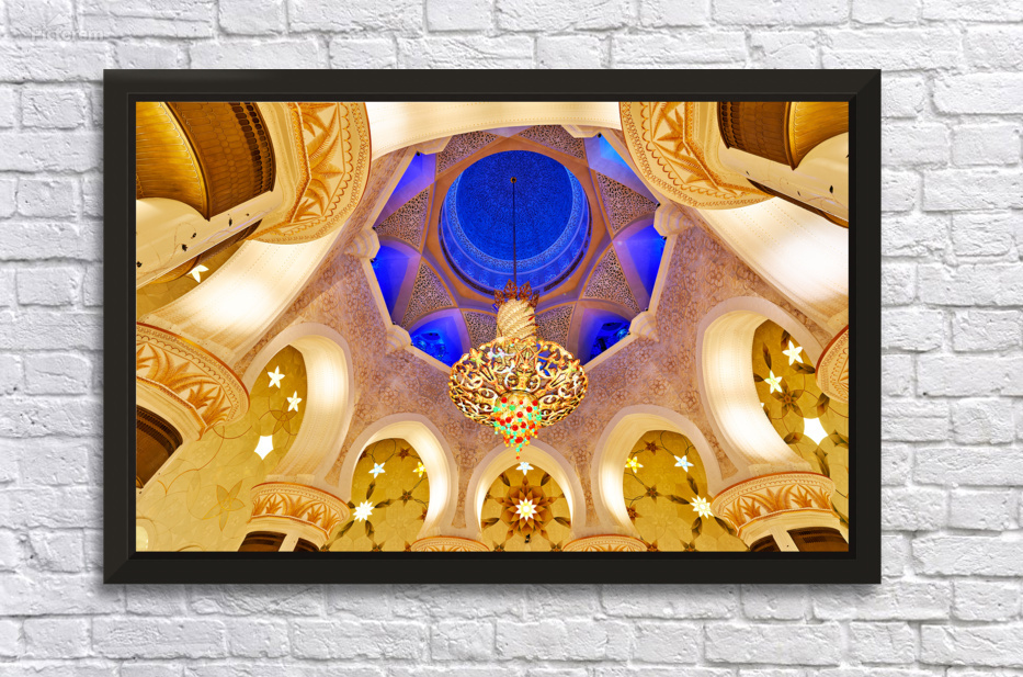 Visitors admire the details of the dome and chandelier inside Sheikh Zayed Grand Mosque in Abu Dhabi during the day.