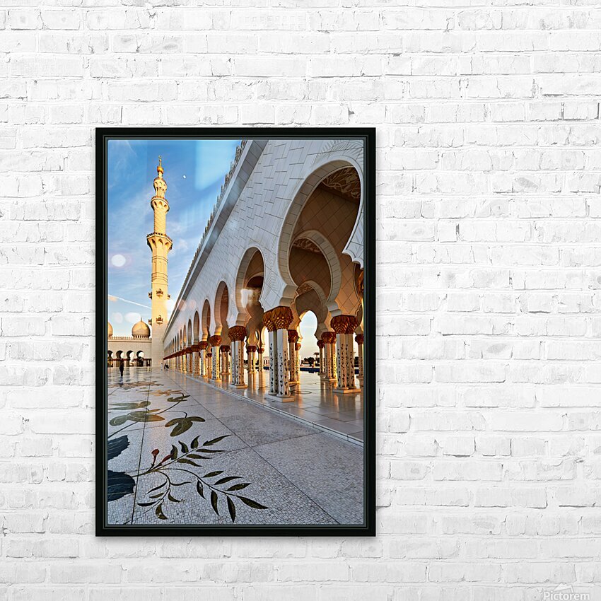 Pour obtenir "Visit to Sheikh Zayed Grand Mosque in Abu Dhabi at sunset" dans une impression encadrée.
