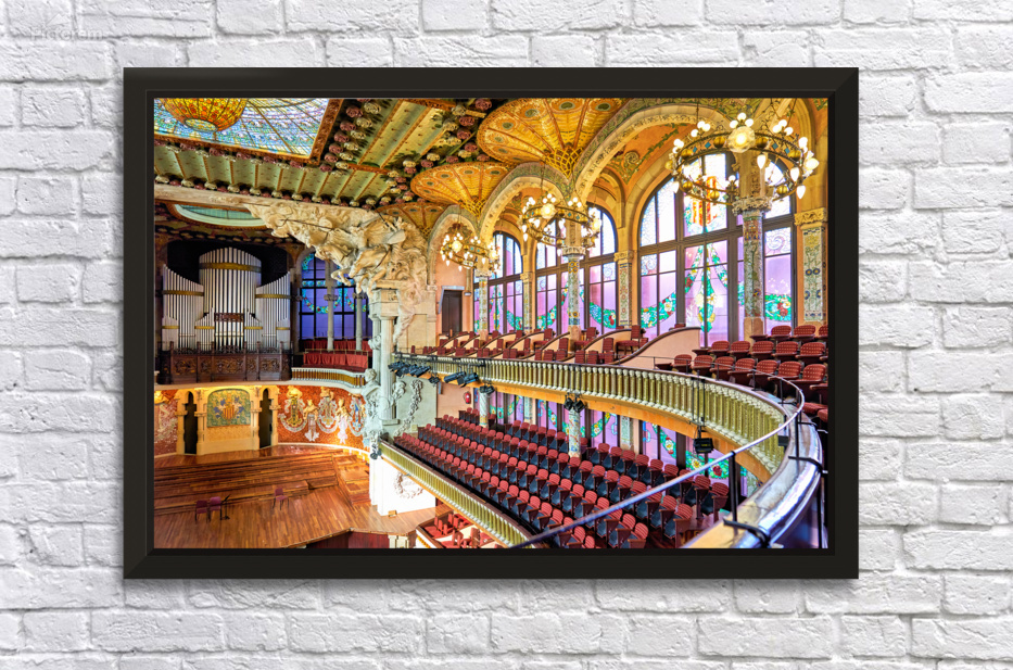 "Concert hall view of Palau de la Musica Catalana in Barcelona" dans une impression encadrée.