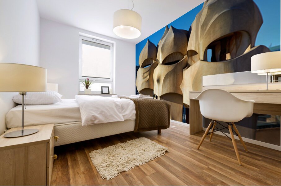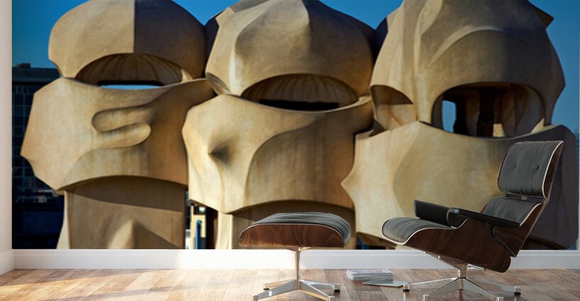 The building Casa Mila stands tall in Barcelona showcasing unique design elements by Gaudi under a clear blue sky.