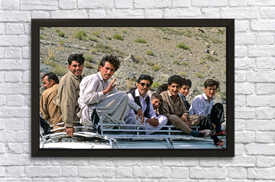 People enjoy traveling on the roof of a van while exploring the mountains of Pakistan. The group shares smiles and views together.