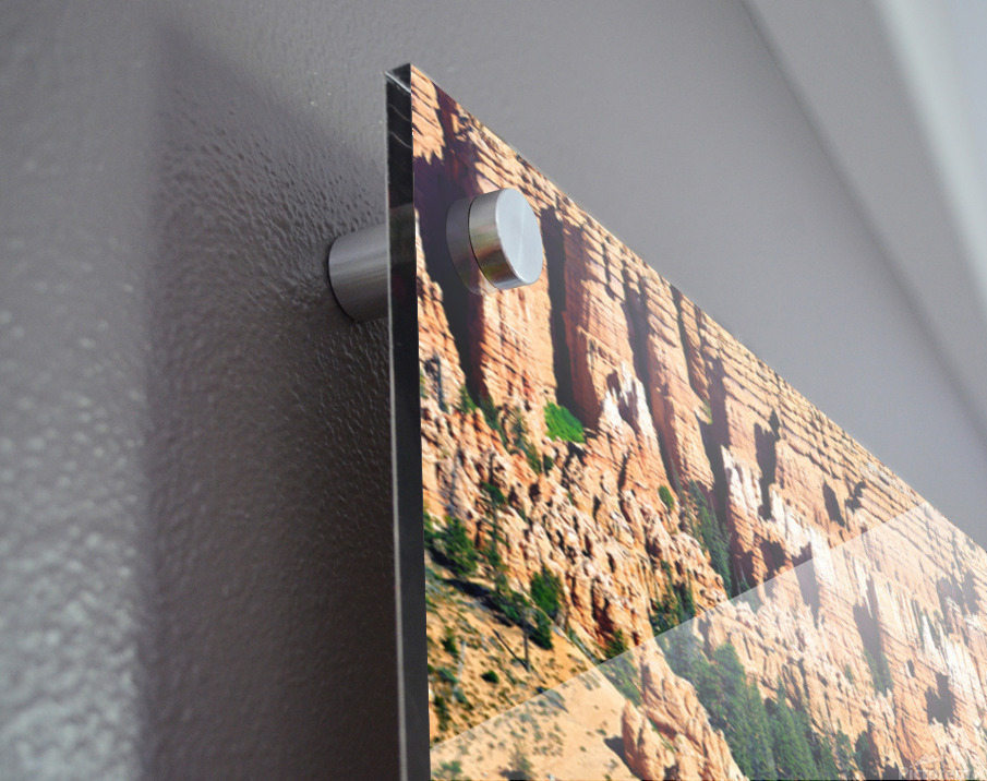 Impression sur acrylique avec entretoises ( cylindres métalliques )