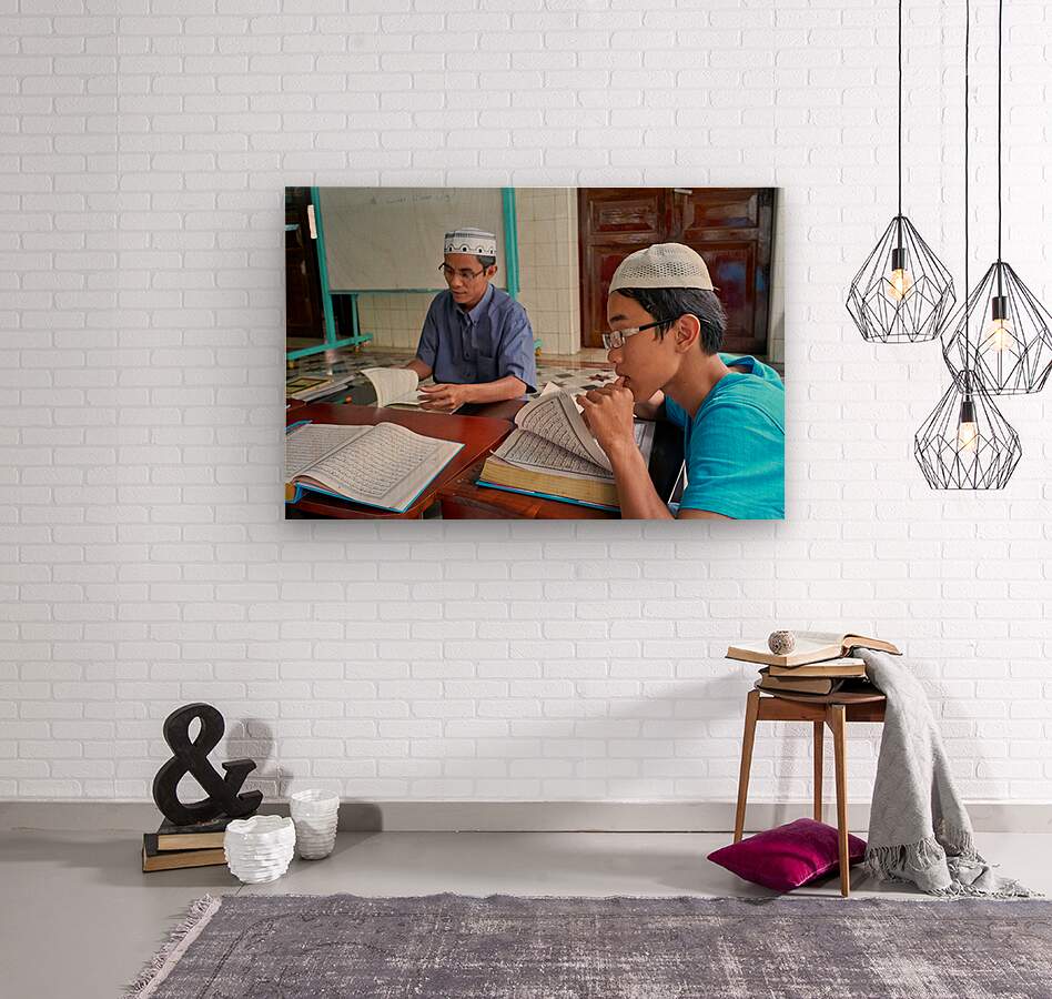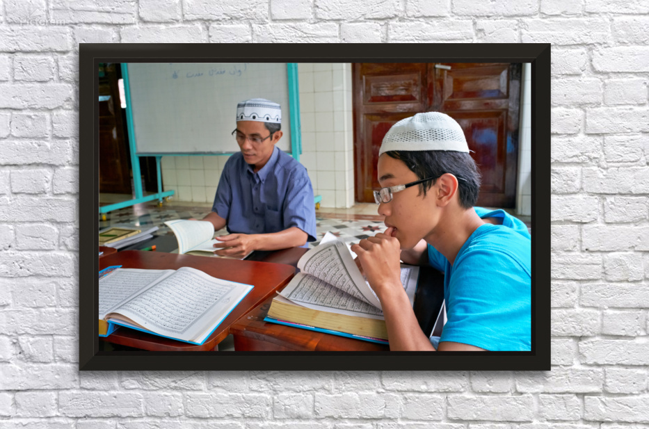 Two students focus on their studying in a classroom in Ho Chi Minh City Vietnam. They read from books and share knowledge.