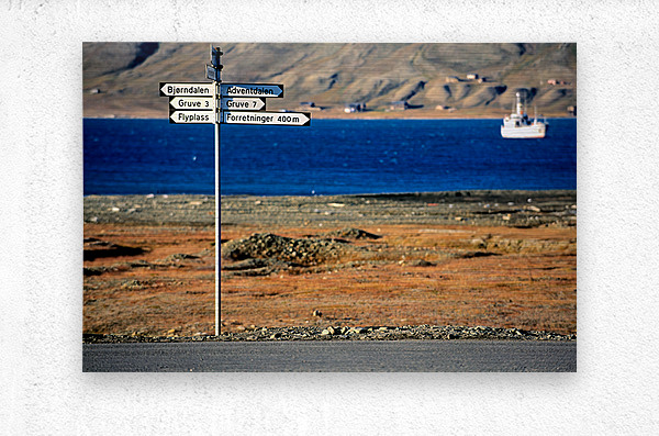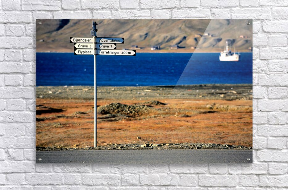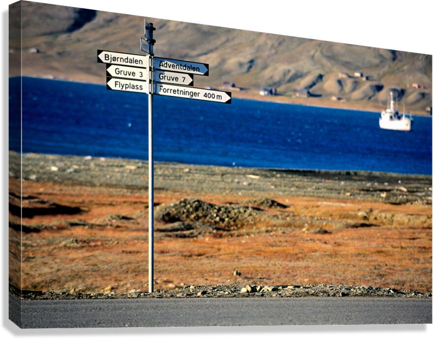 Pour obtenir "Directions guide visitors in Longyearbyen Svalbard Archipelago" dans une impression encadrée.