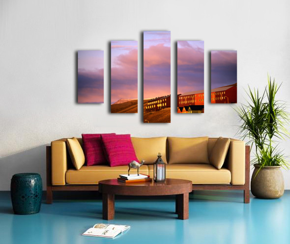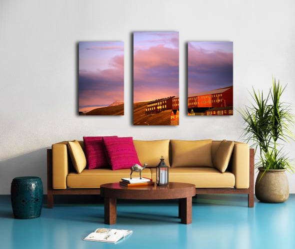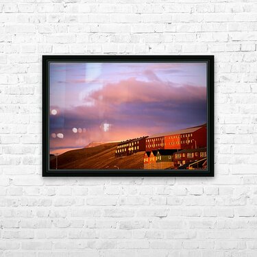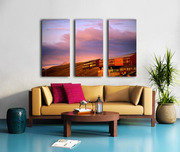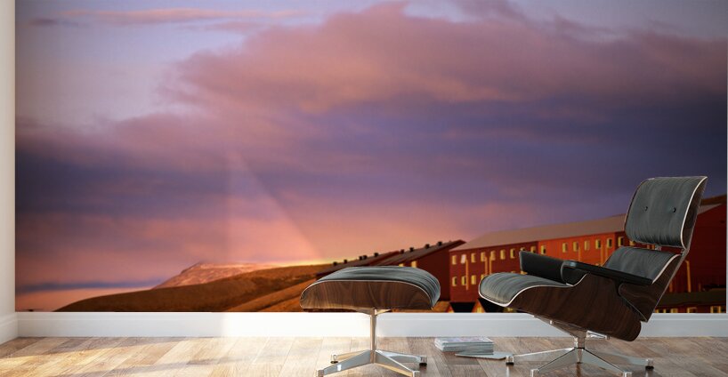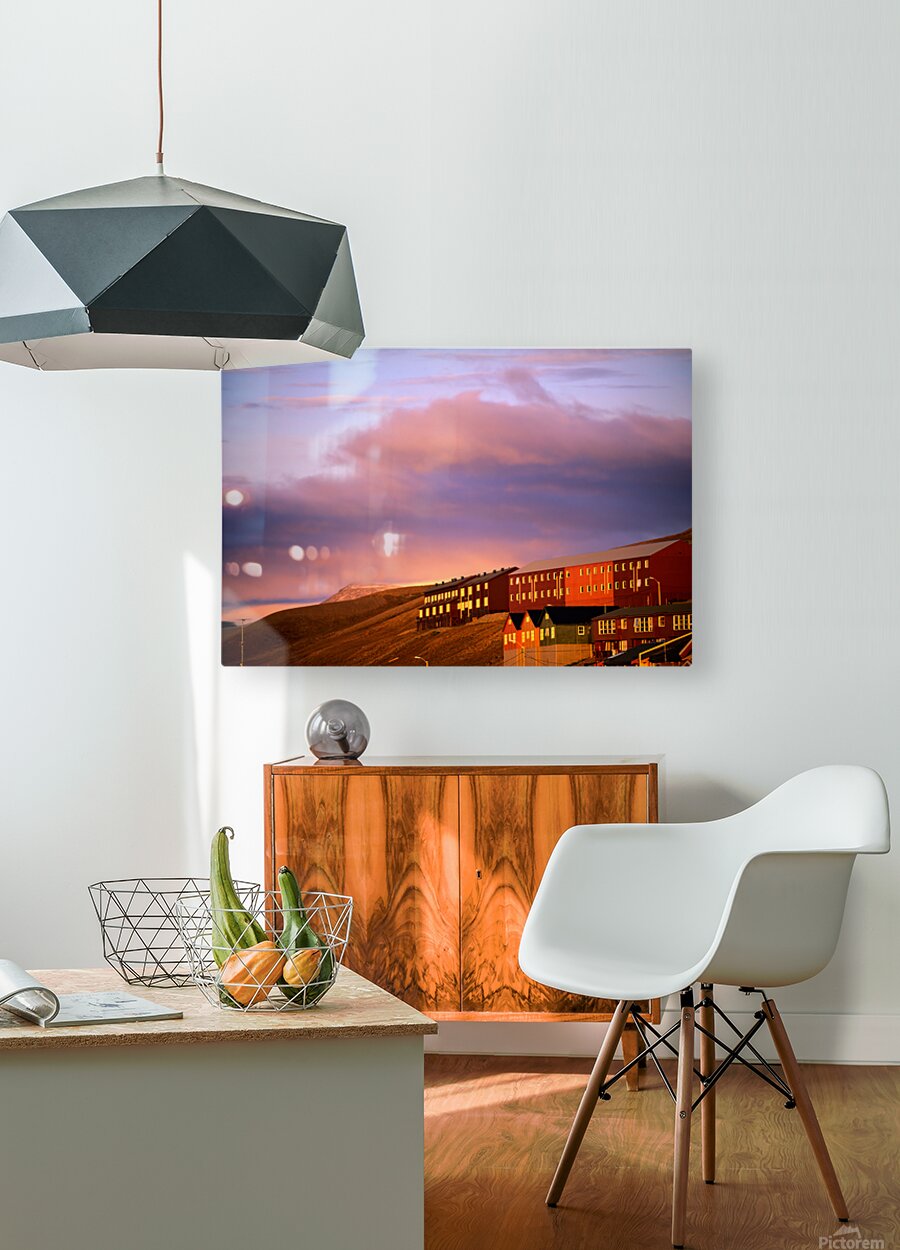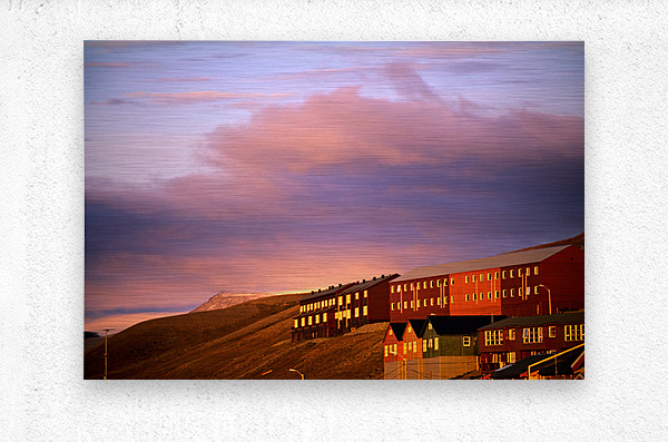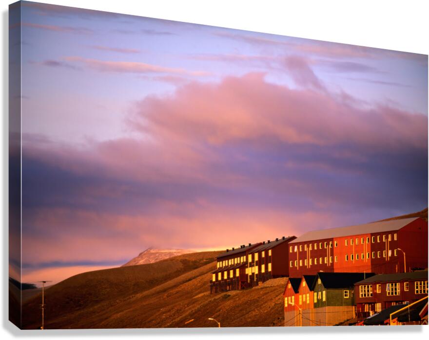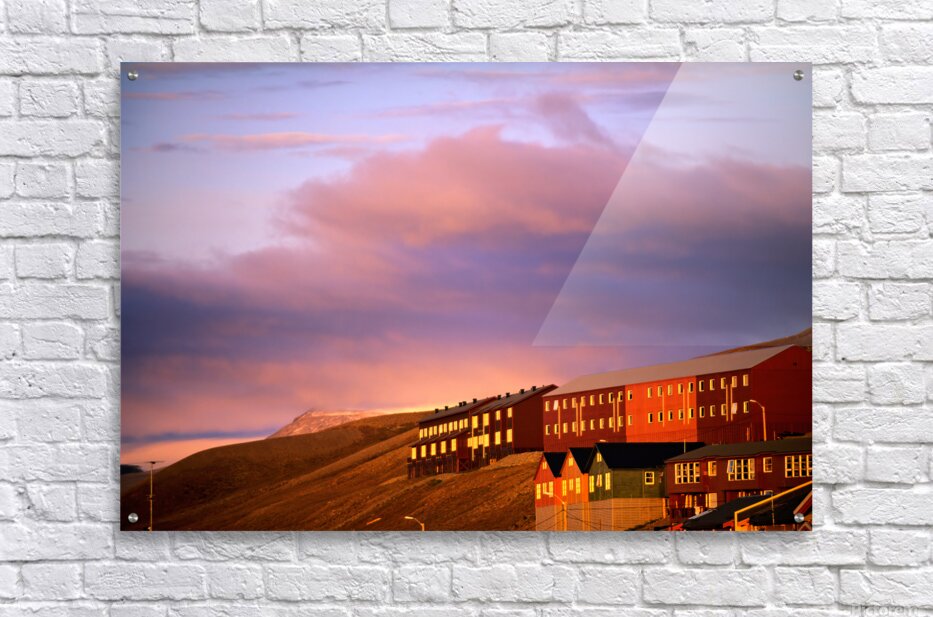 SUR CETTE OEUVRE: SUNSET OVER LONGYEARBYEN IN SVALBARD ARCHIPELAGO NORWAY