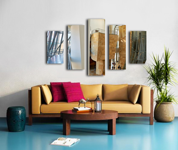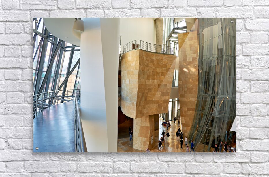 Inside Guggenheim Museum in Bilbao Spain with visitors walking Impression du cadre