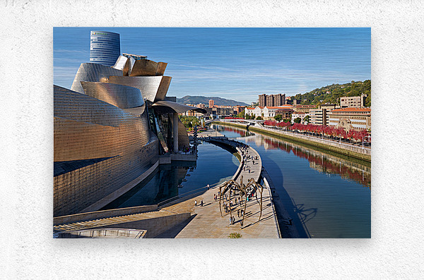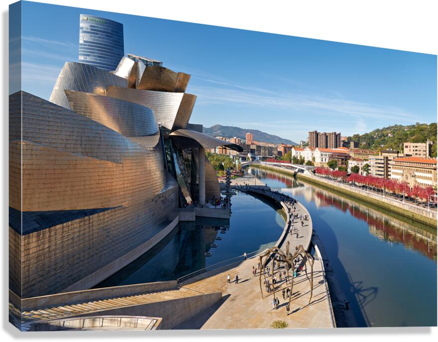 SUR CETTE OEUVRE: CONSTRUCTION AND ARCHITECTURE NEAR THE RIVER IN BILBAO SPAIN