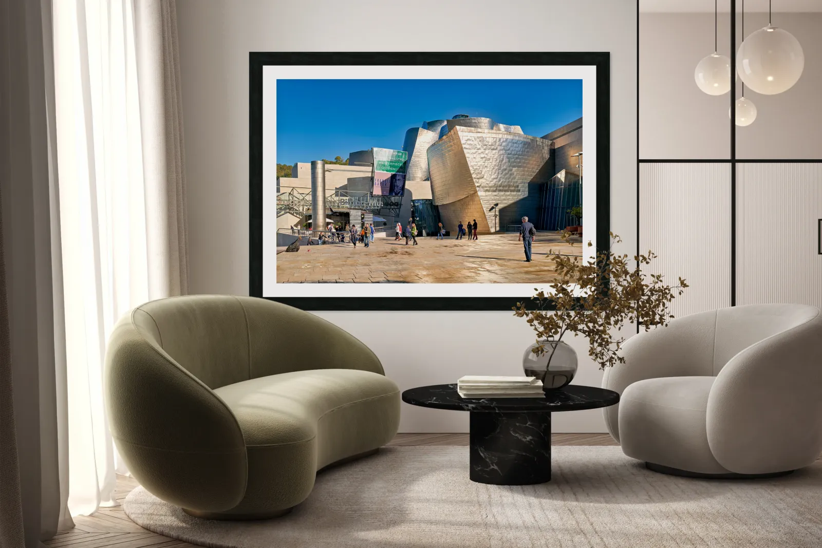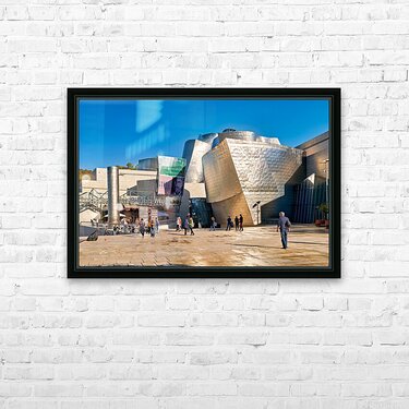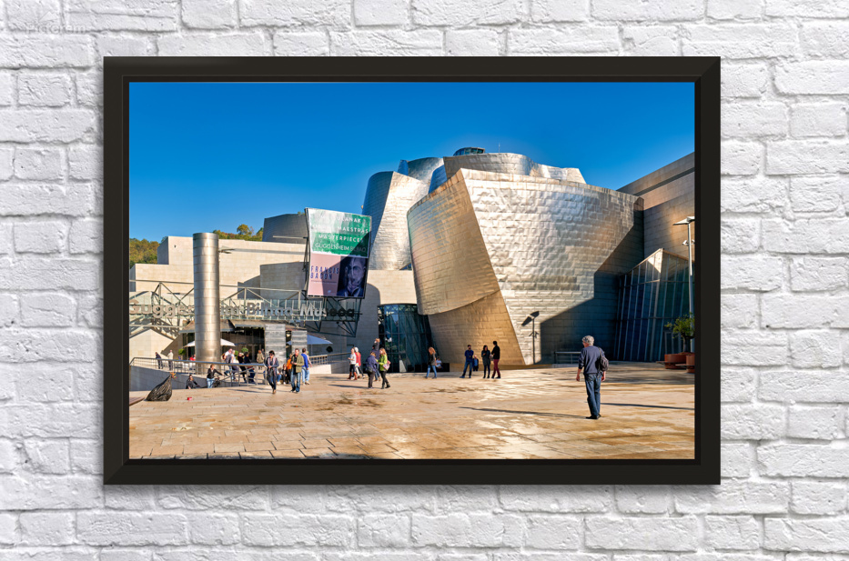 "People walking near Guggenheim Museum in Bilbao Spain" dans une impression encadrée.