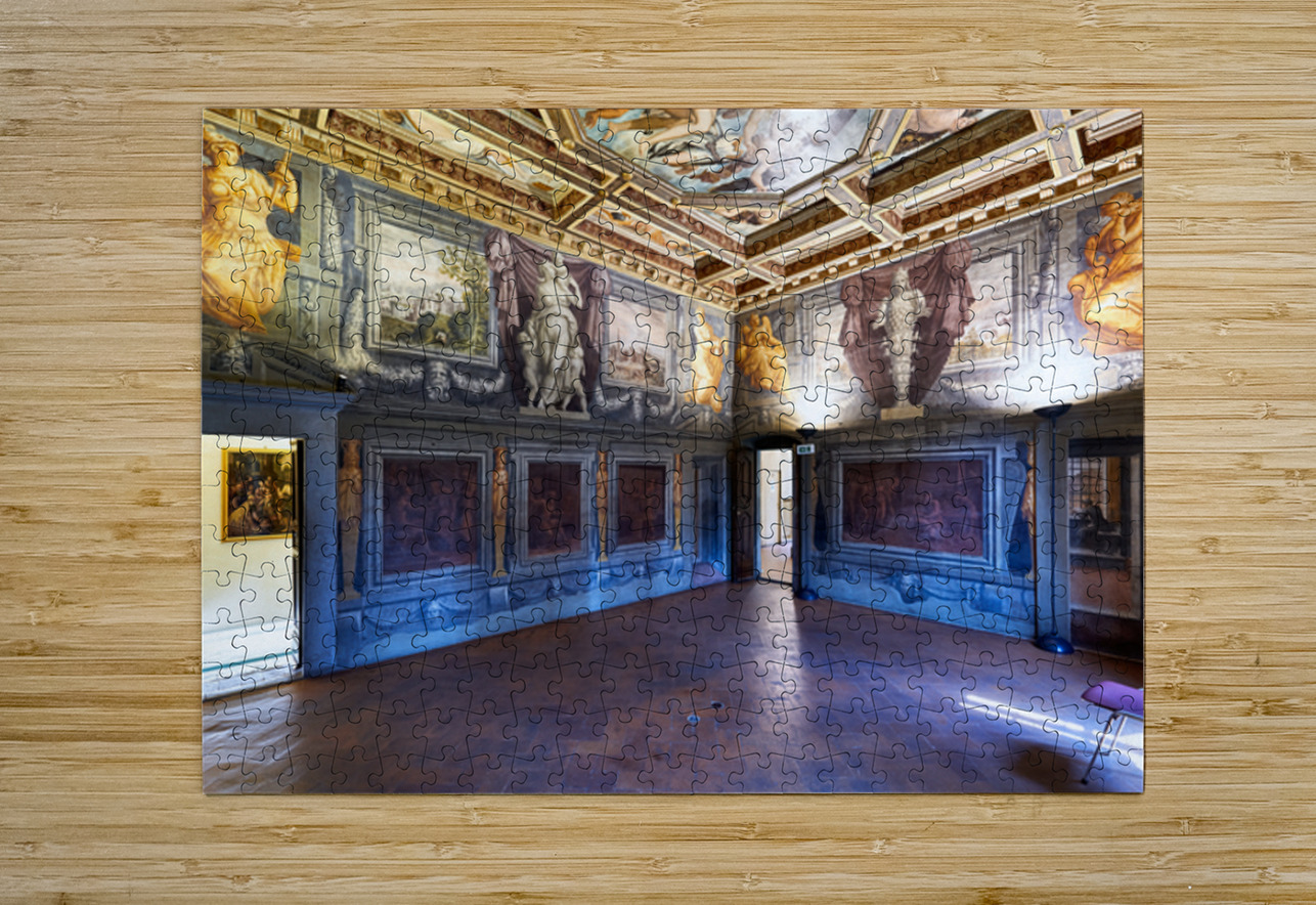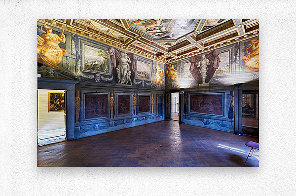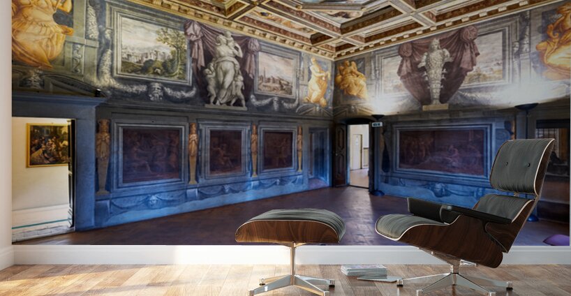 Visitors explore the Vasari Home Museum in Arezzo Tuscany Italy admiring the beautiful artwork and rich history inside the building.
