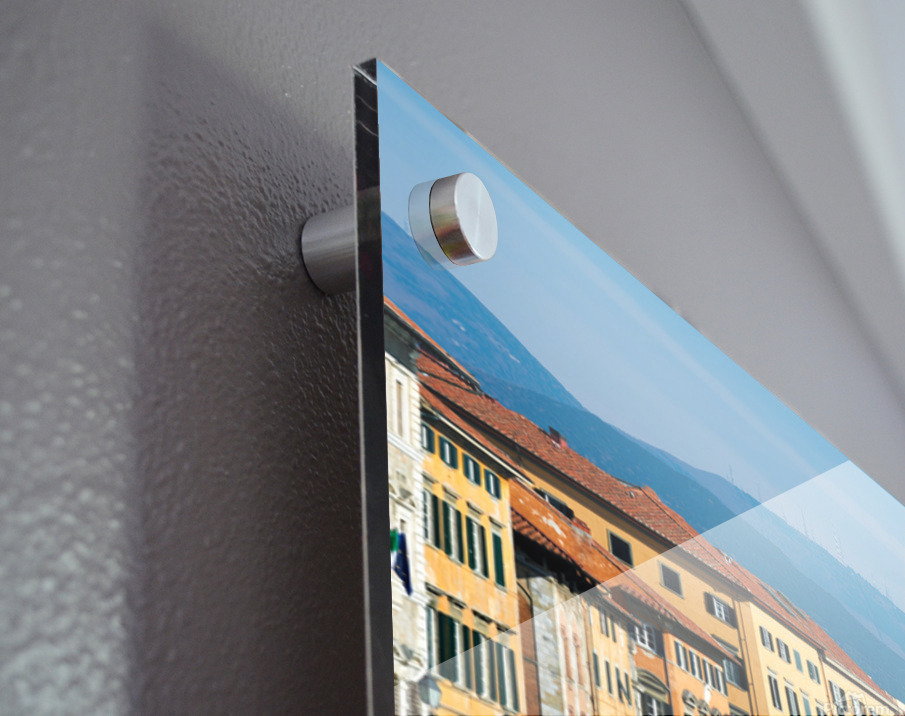 Impression sur acrylique avec entretoises ( cylindres métalliques )
