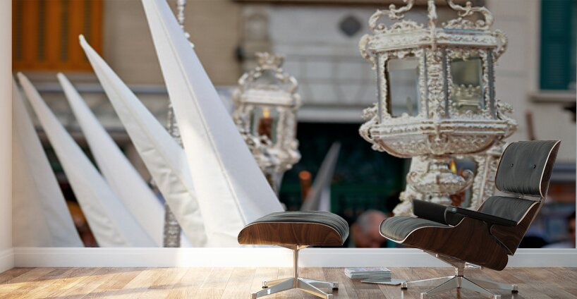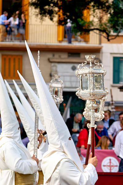 People participate in processions for Easter Holy Week in Malaga Spain.