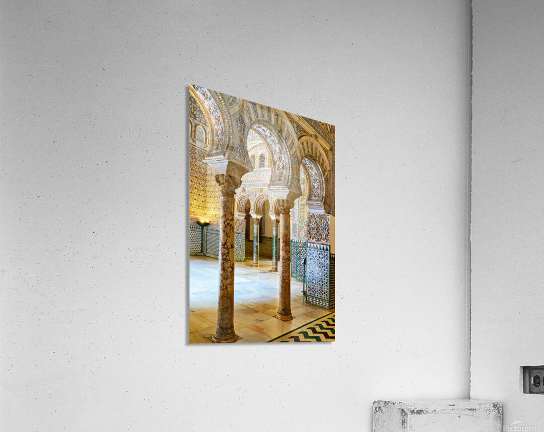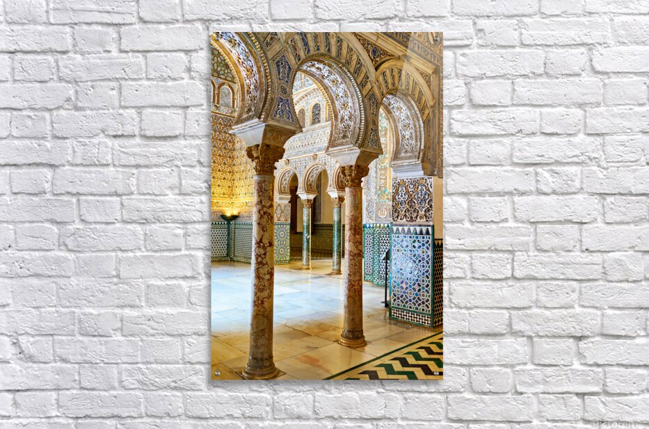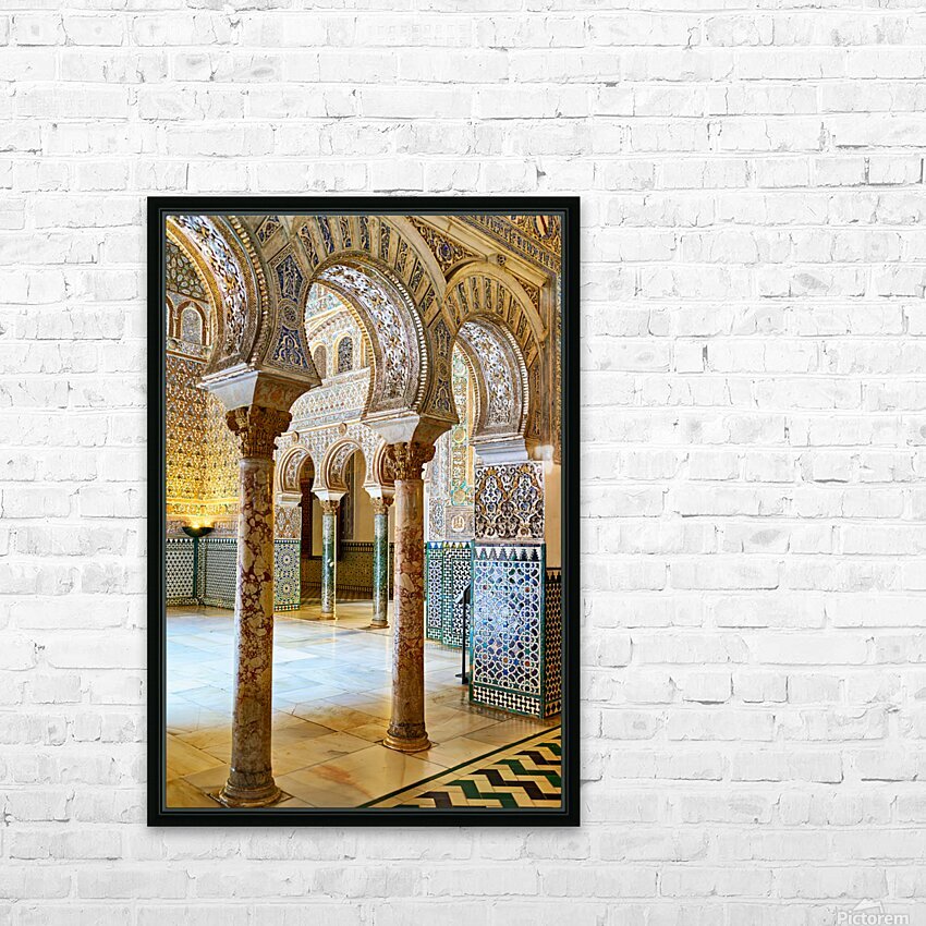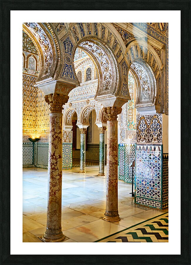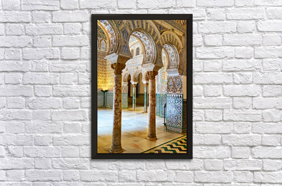 "Exploring the alcazar in seville andalusia" dans une impression encadrée.