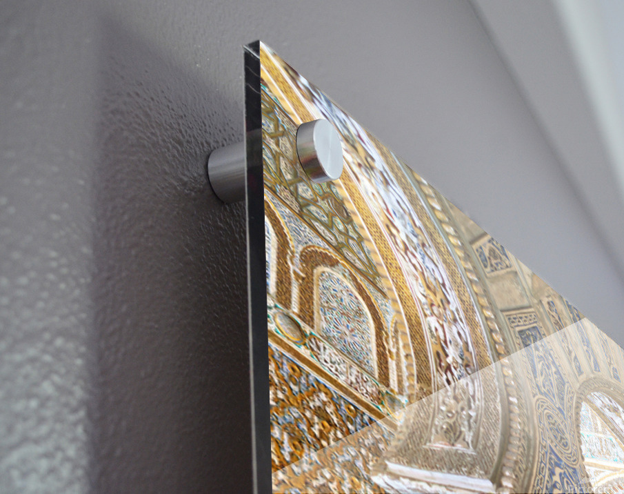 Impression sur acrylique avec entretoises ( cylindres métalliques )