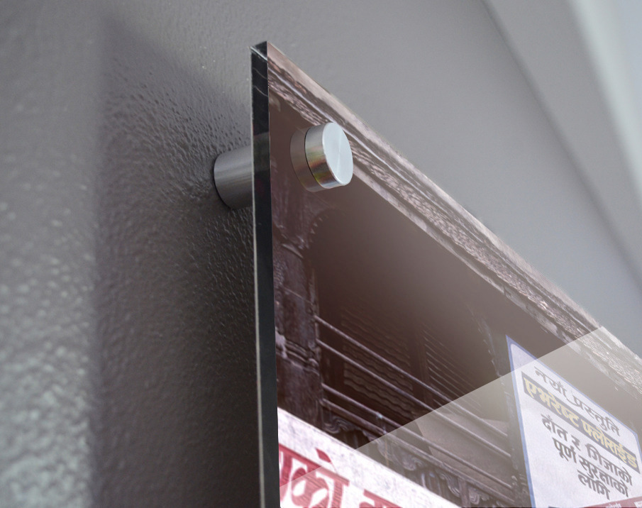 Printed to the edge - Ready to hang - provided with 4 premium polished aluminum stand off ( wall screws and mounting hardware provided )