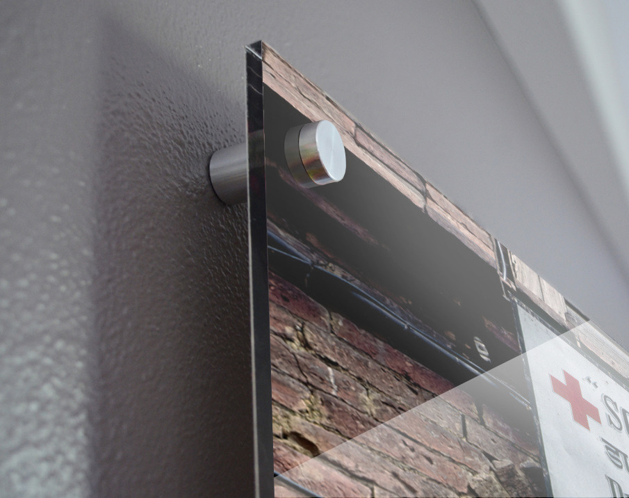 Printed to the edge - Ready to hang - provided with 4 premium polished aluminum stand off ( wall screws and mounting hardware provided )