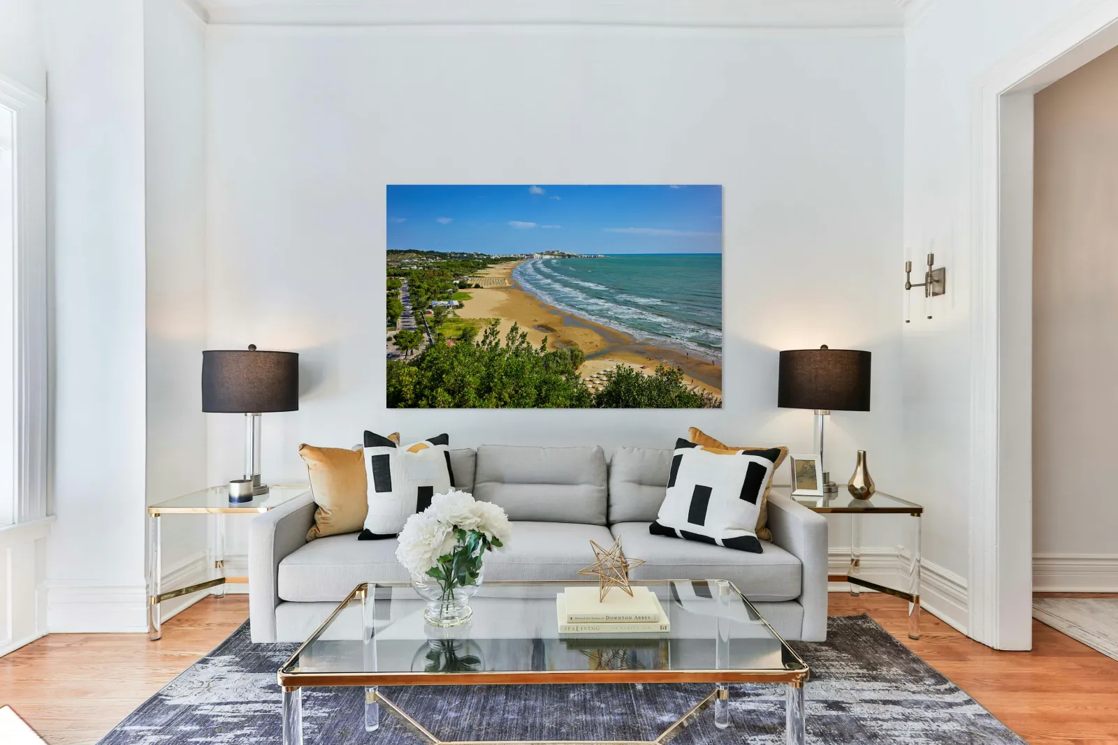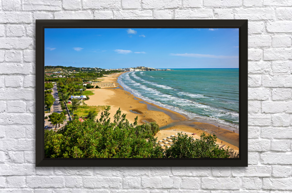 "Vieste Gargano. Apulia Puglia Italy. The beach" in a framed print.
