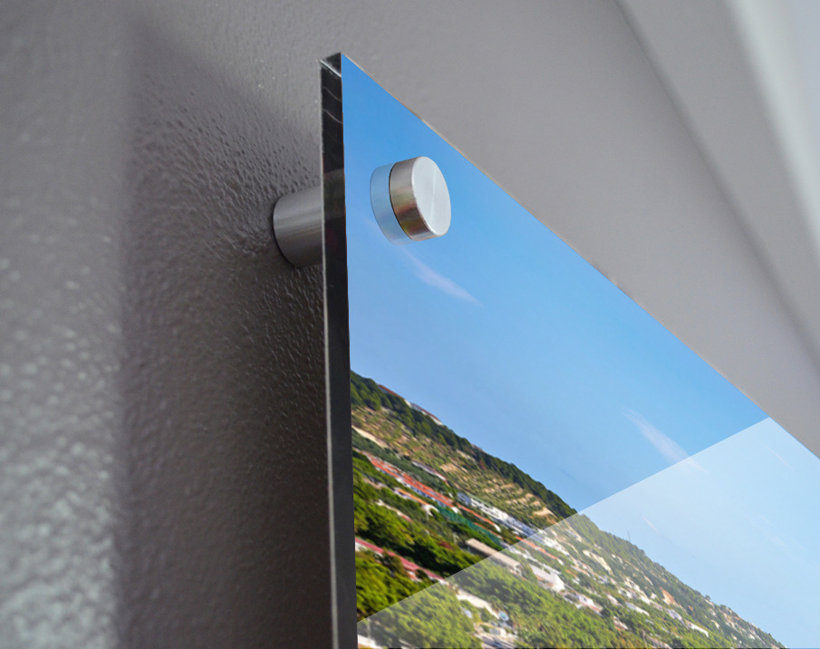 Printed to the edge - Ready to hang - provided with 4 premium polished aluminum stand off ( wall screws and mounting hardware provided )