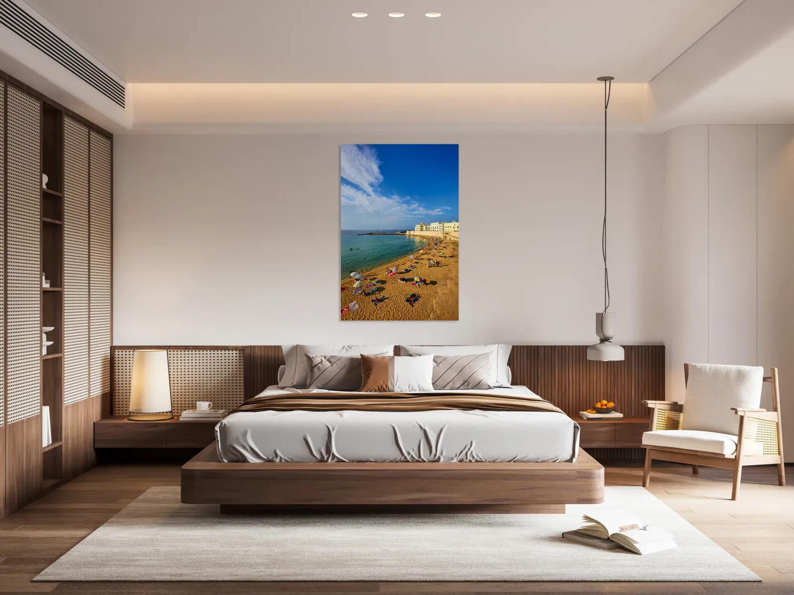 "Salento. Apulia Puglia Italy. Gallipoli. People on the beach" in a framed print.