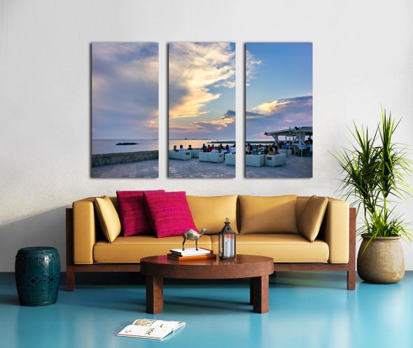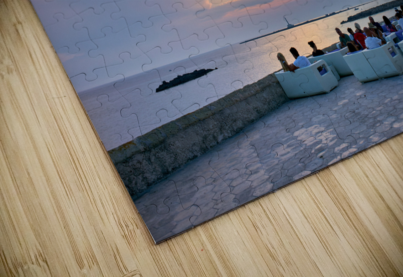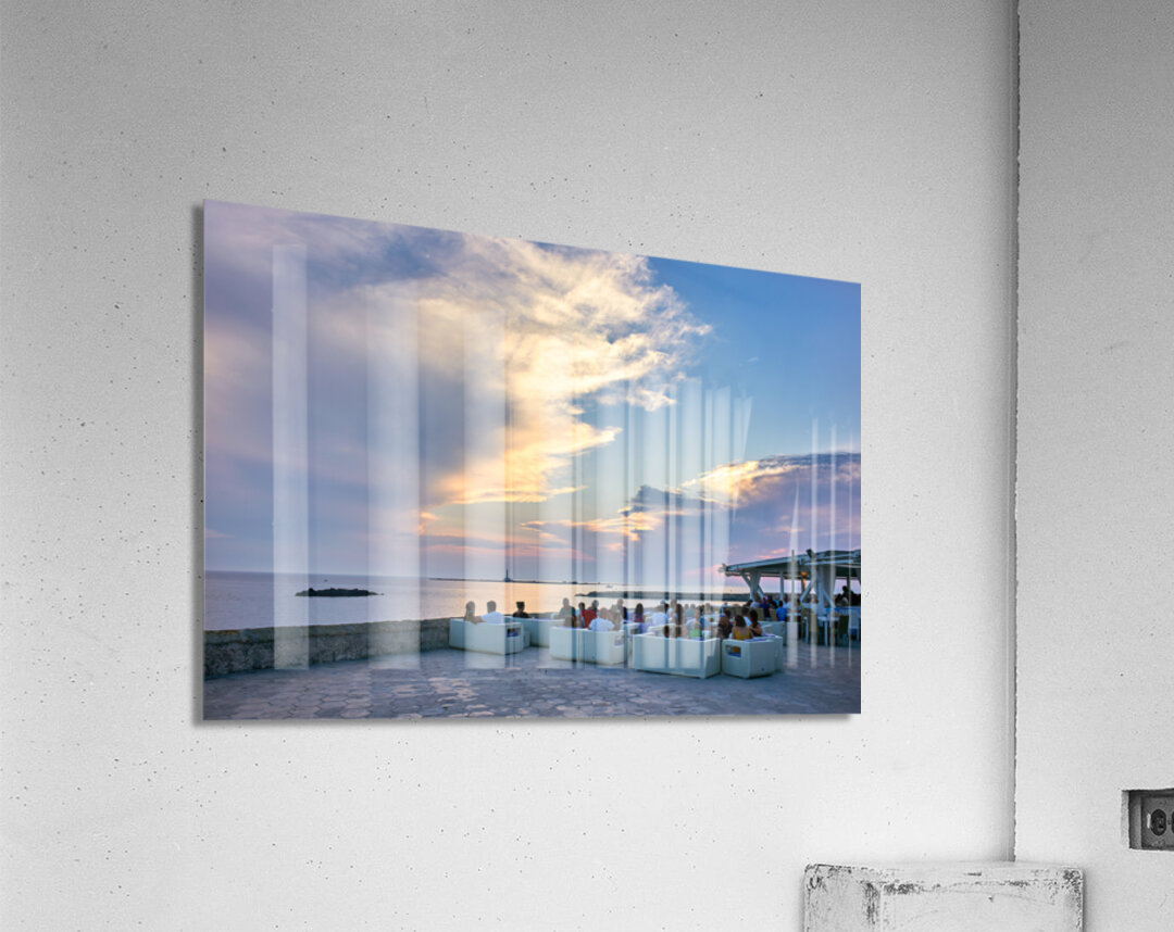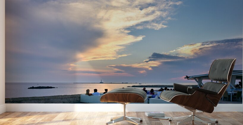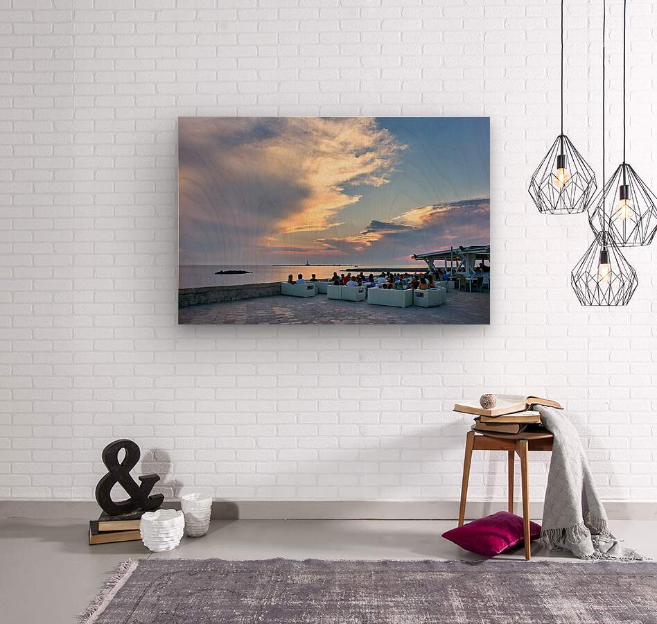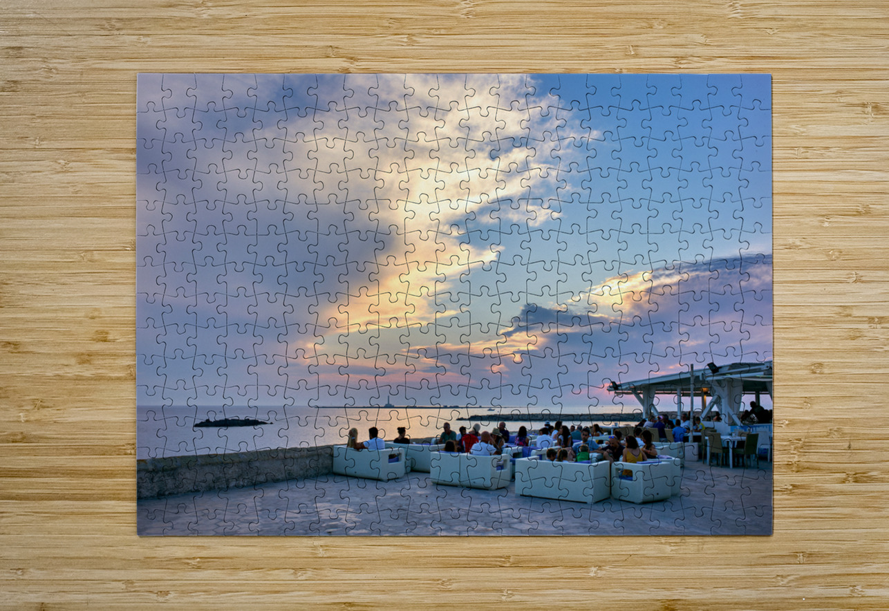 "Salento. Apulia Puglia Italy. Gallipoli. Aperitif on the seafront at sunset" in a framed print.