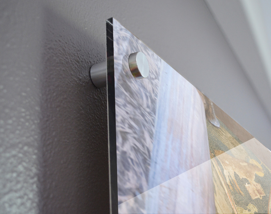 Printed to the edge - Ready to hang - provided with 4 premium polished aluminum stand off ( wall screws and mounting hardware provided )