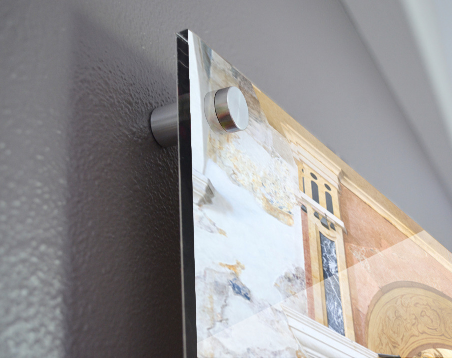 Printed to the edge - Ready to hang - provided with 4 premium polished aluminum stand off ( wall screws and mounting hardware provided )