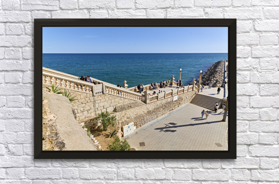 "Sitges Catalunya Spain. The stairs to the Cathedral" in a framed print.