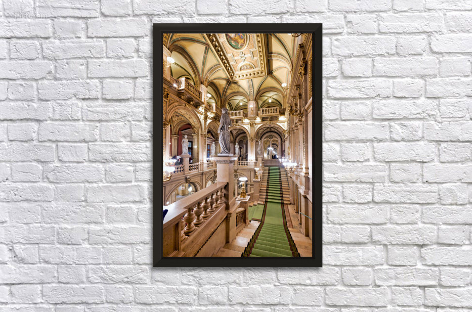 "Opulent historic building interior with grand staircase and sta" in a framed print.