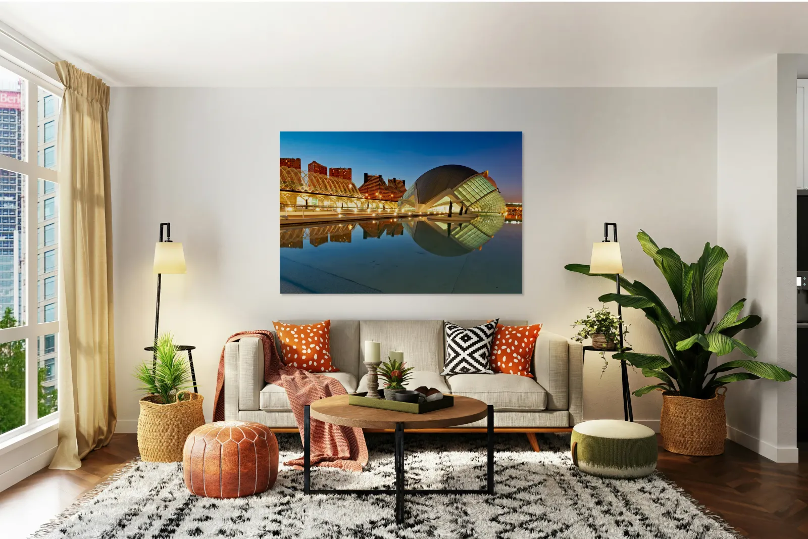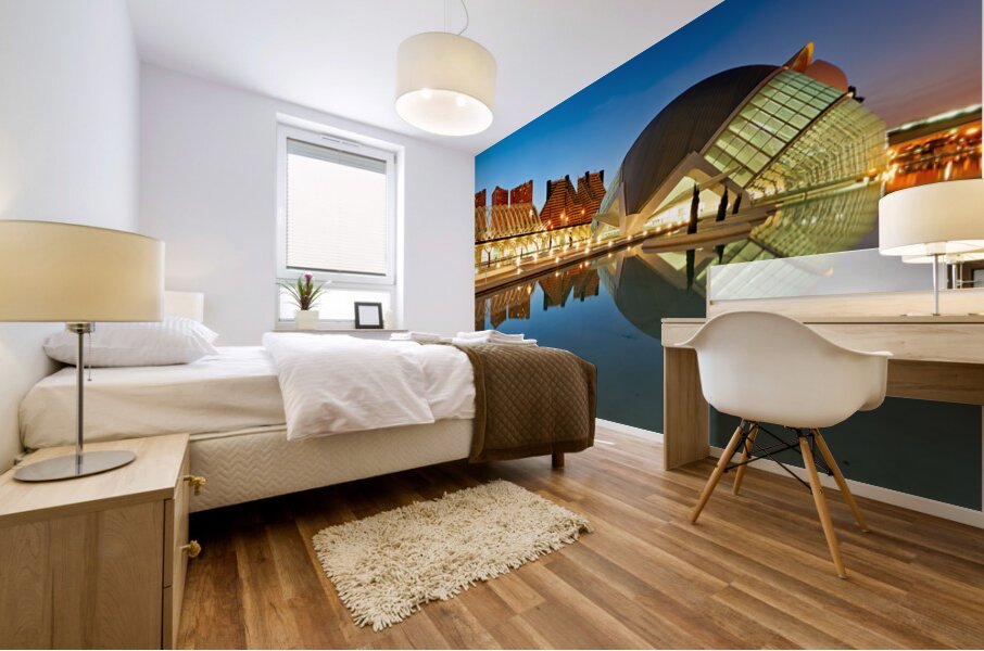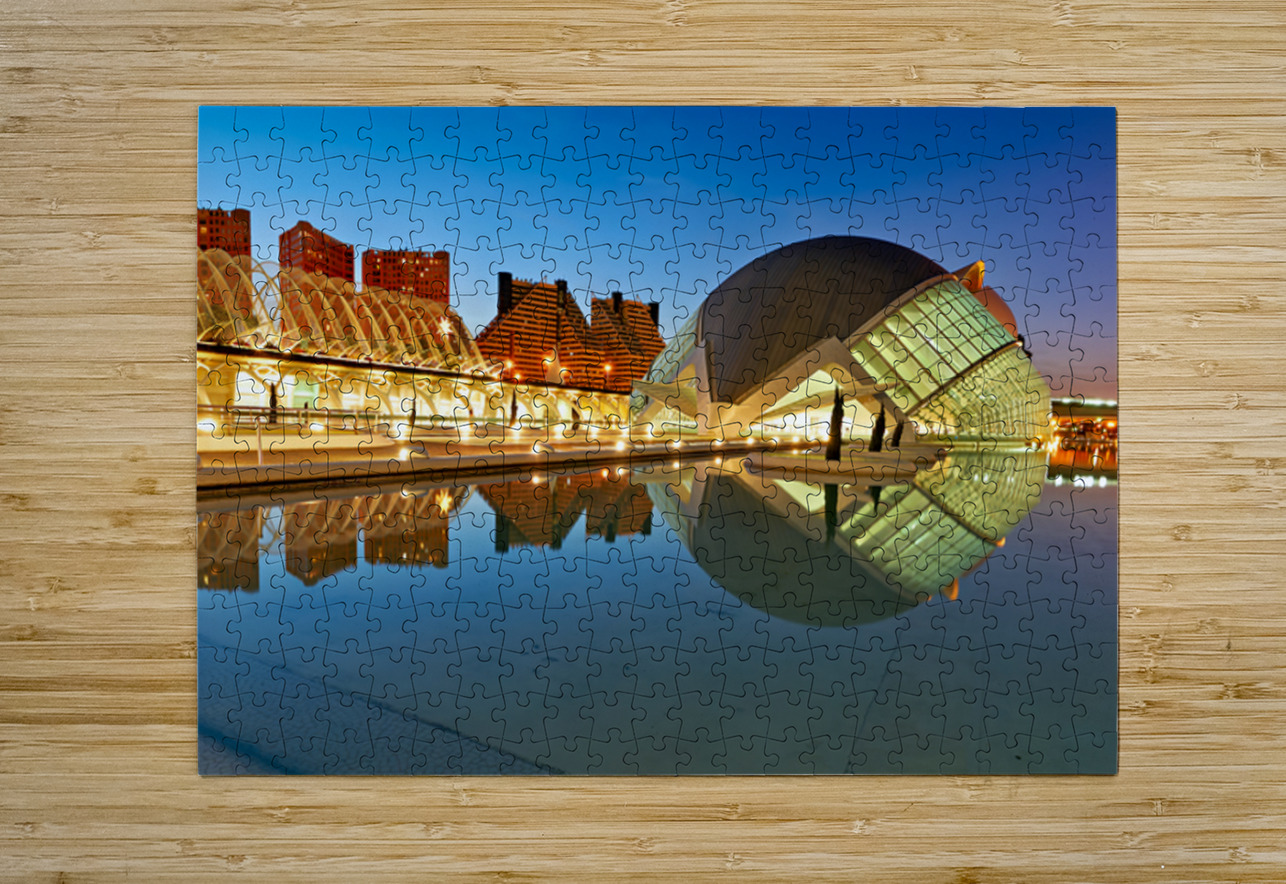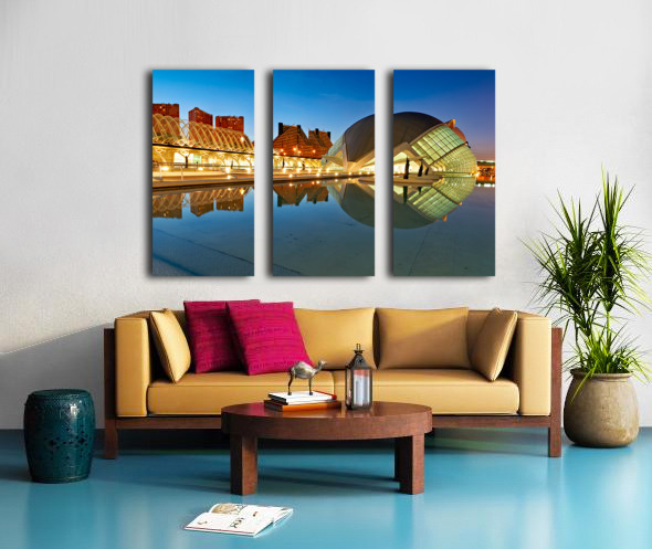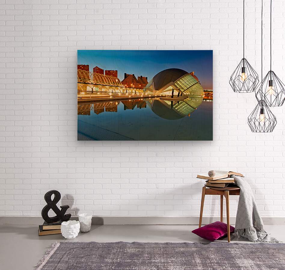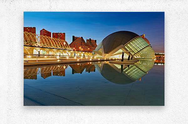 "View of Hemisferic in Valencia Spain during night time" in a framed print.