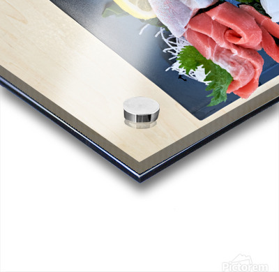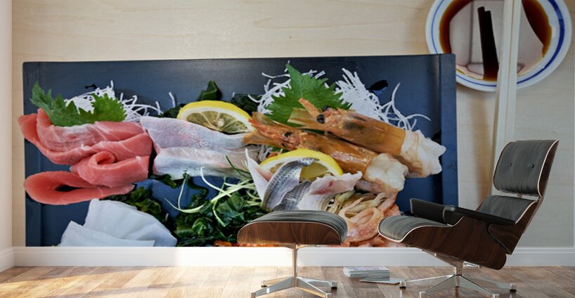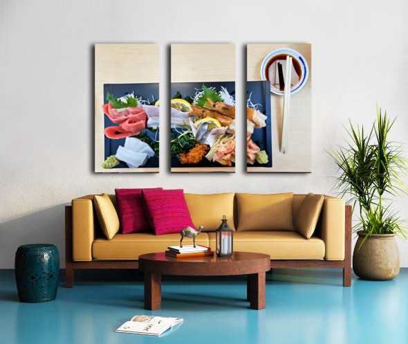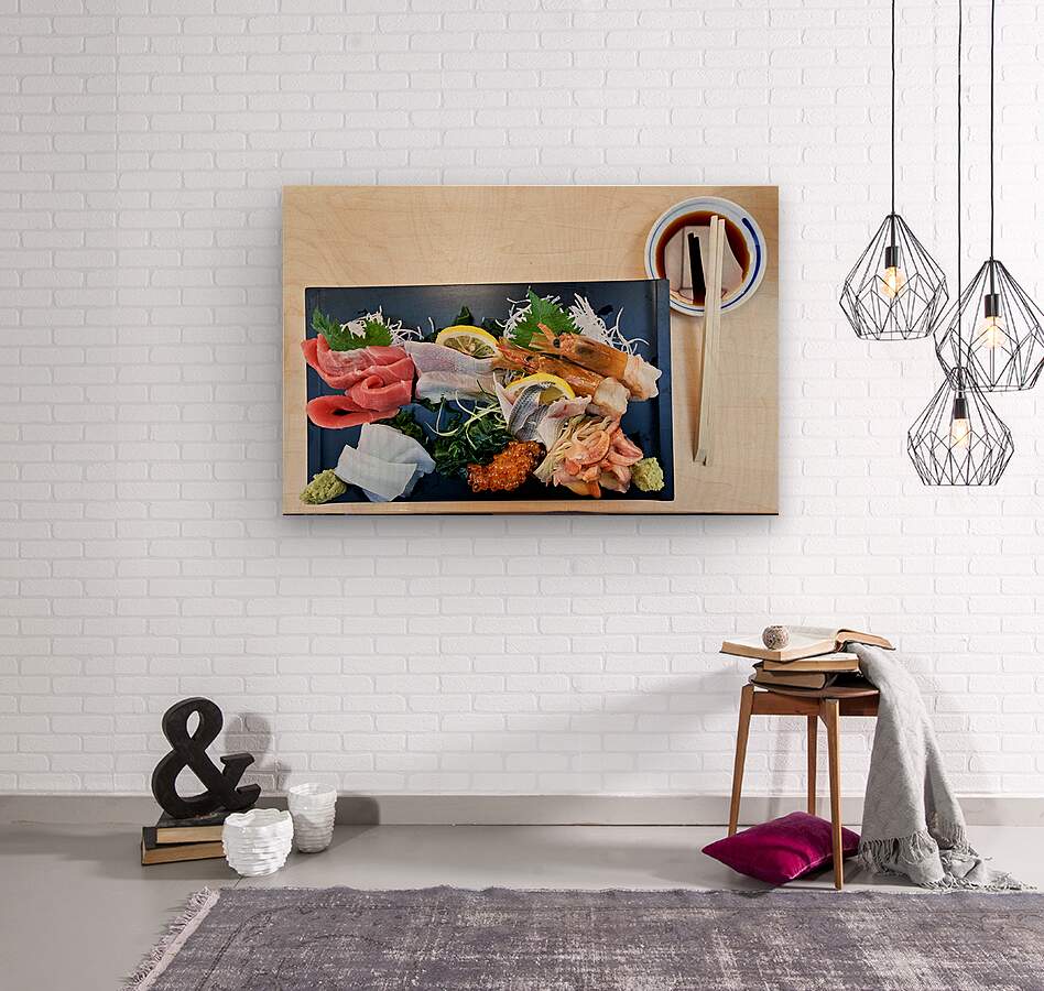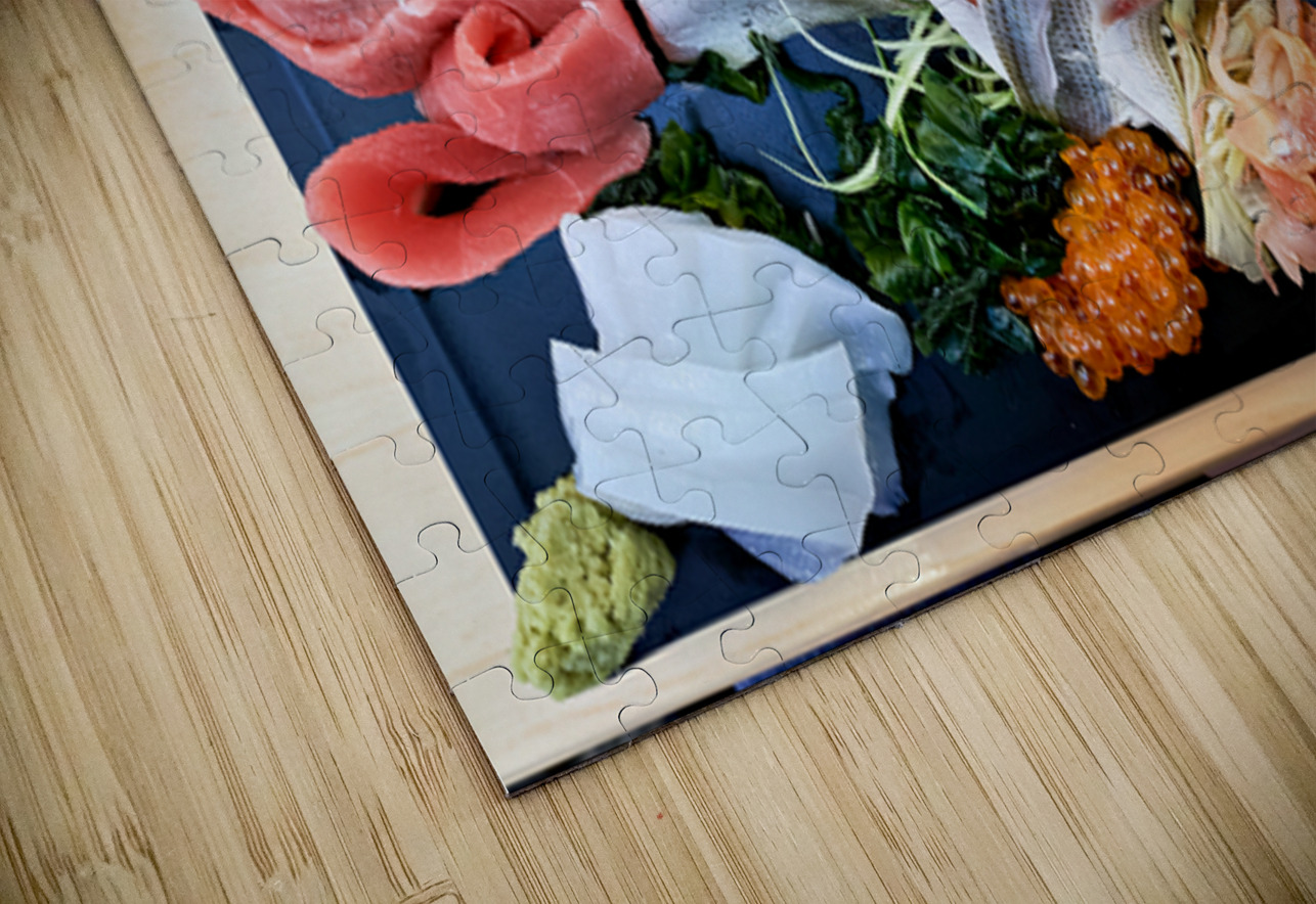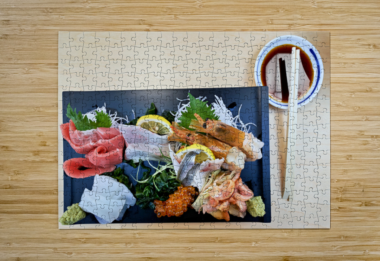 "Sashimi plate prepared for tasting in Tokyo Japan at a restaura" in a framed print.