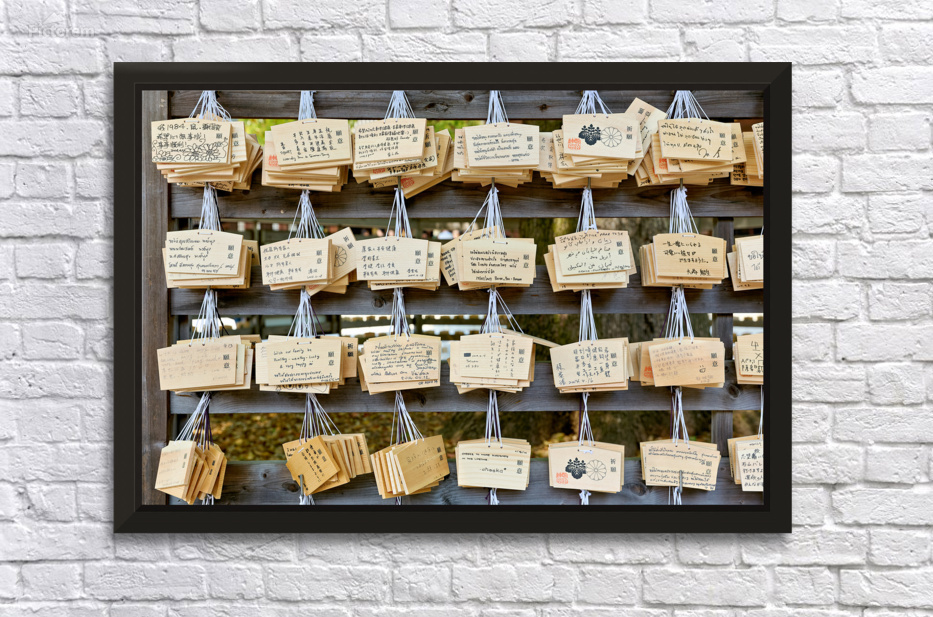 "Wishes and invocations at Meiji Jingu Shrine in Tokyo" in a framed print.