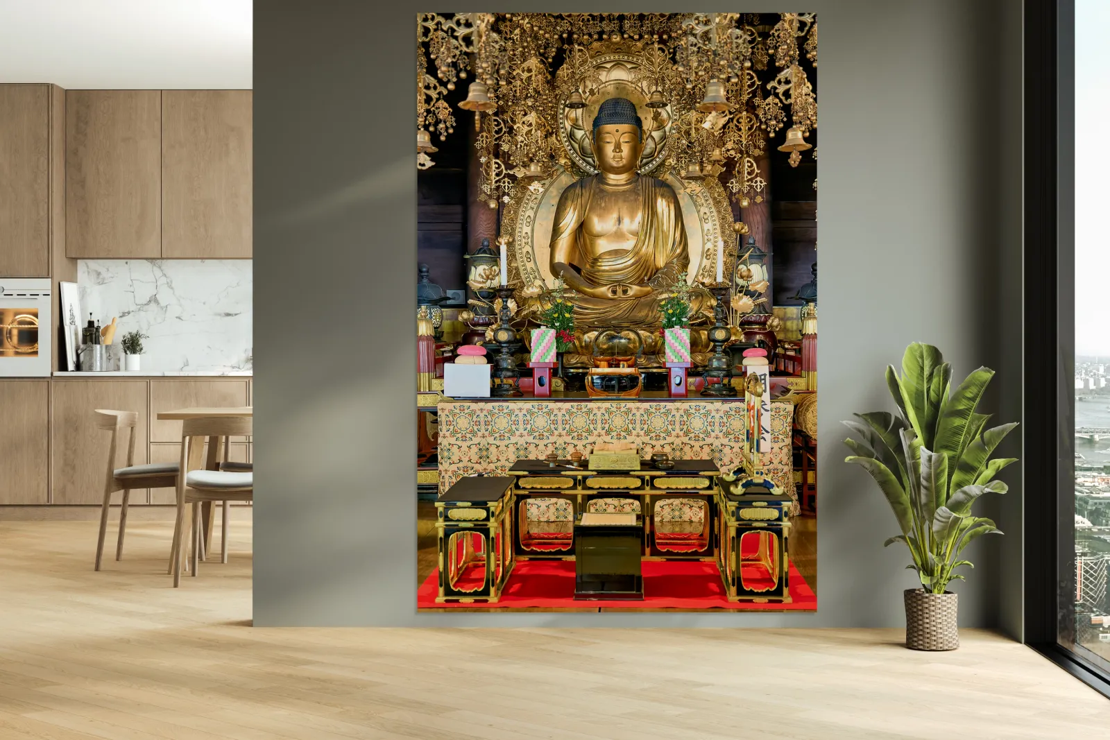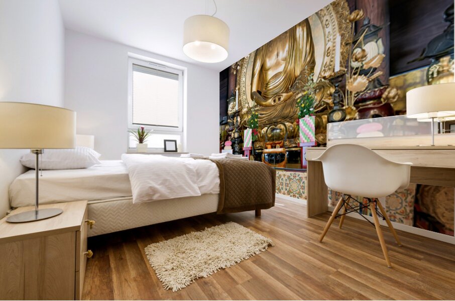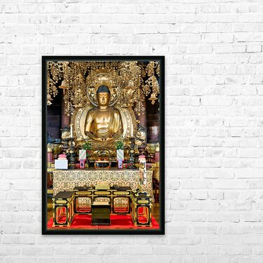 "Buddha statue in Chion in temple located in Kyoto Japan" in a framed print.