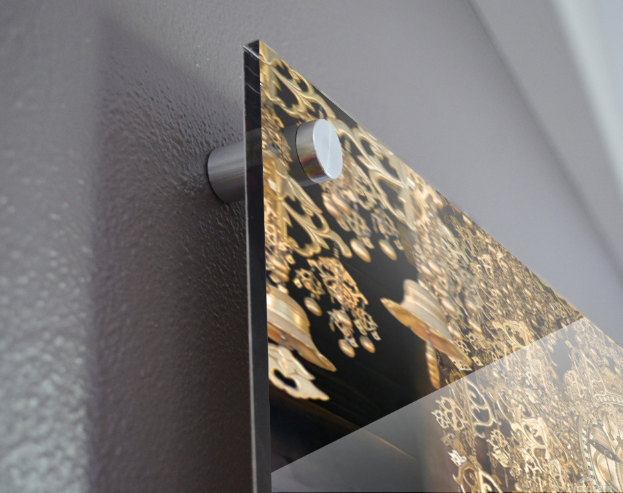 Printed to the edge - Ready to hang - provided with 4 premium polished aluminum stand off ( wall screws and mounting hardware provided )