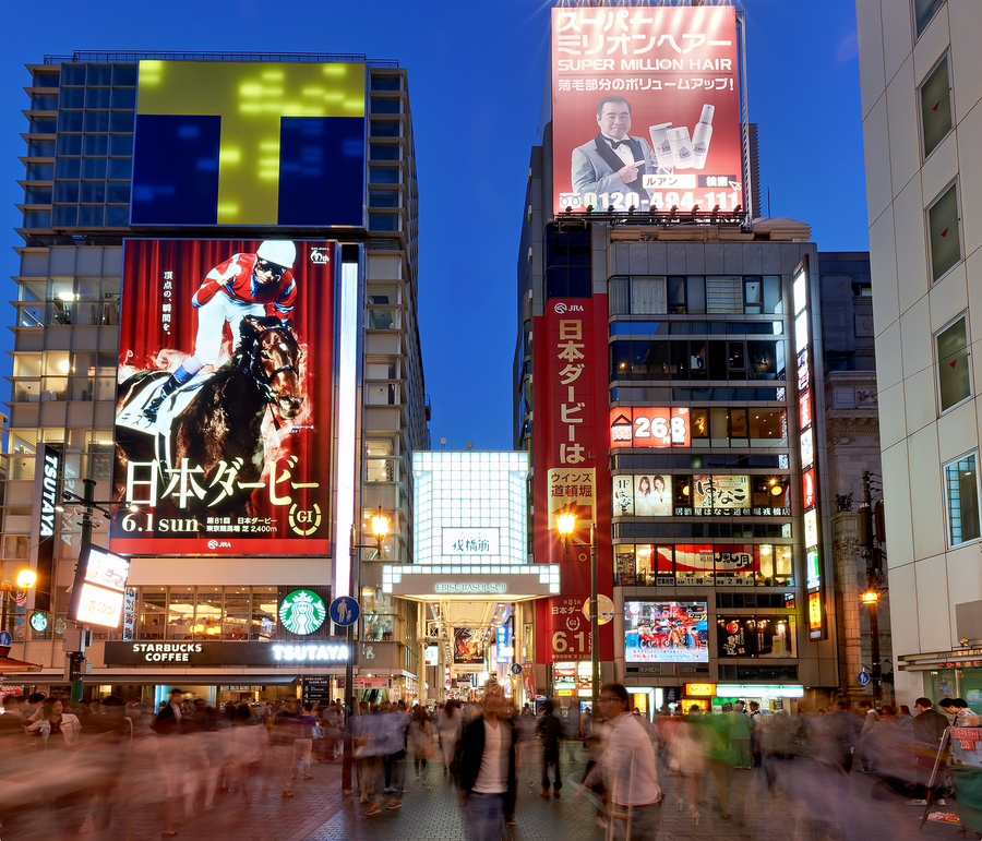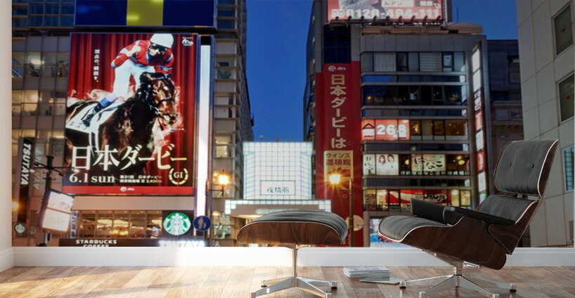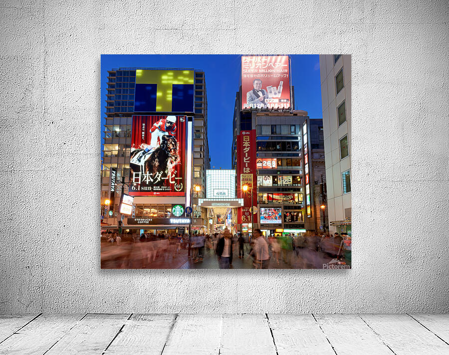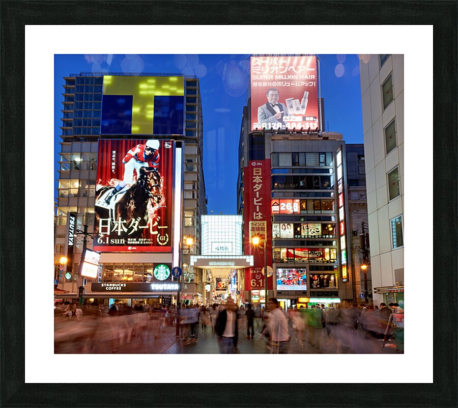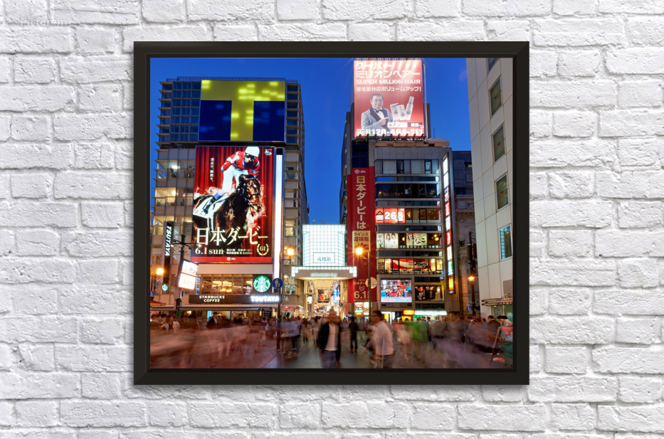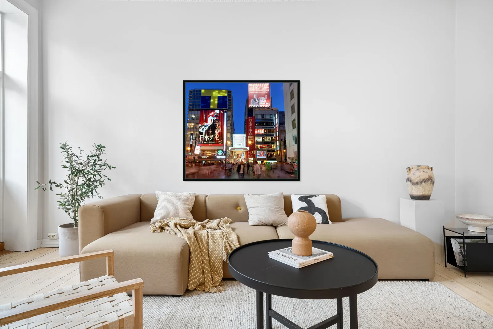 "Illuminated signboards in Dotonbori District of Osaka during sun" in a framed print.