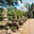 "Ancient stone statues line path to Angkor Thom gate." in a framed print.