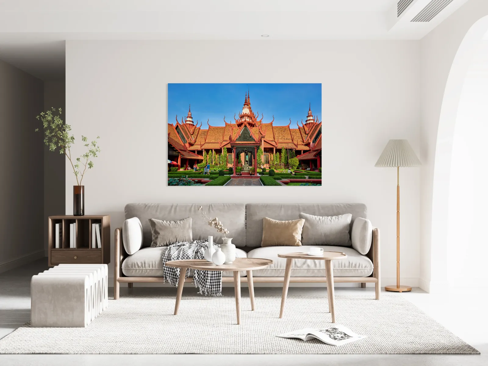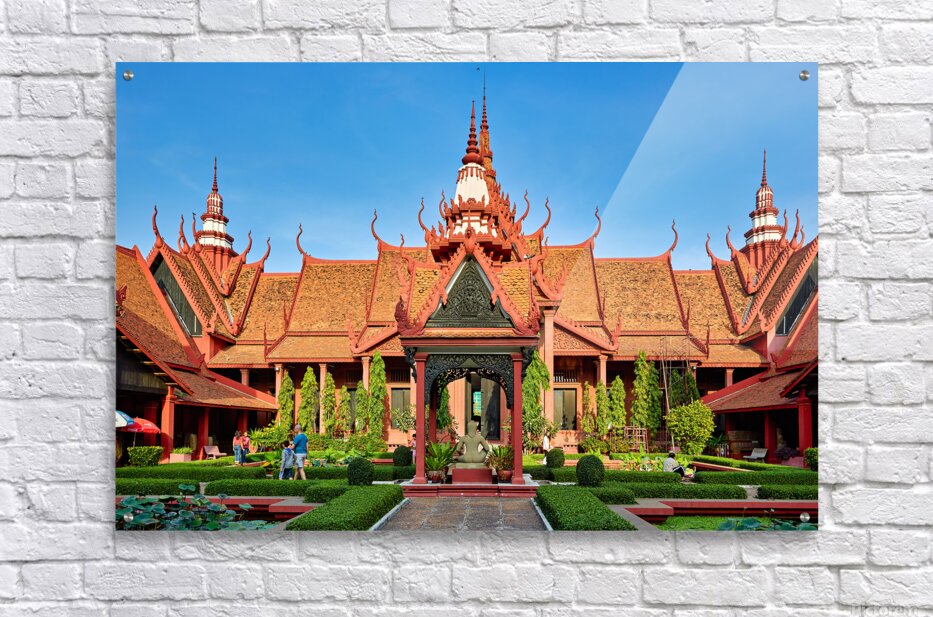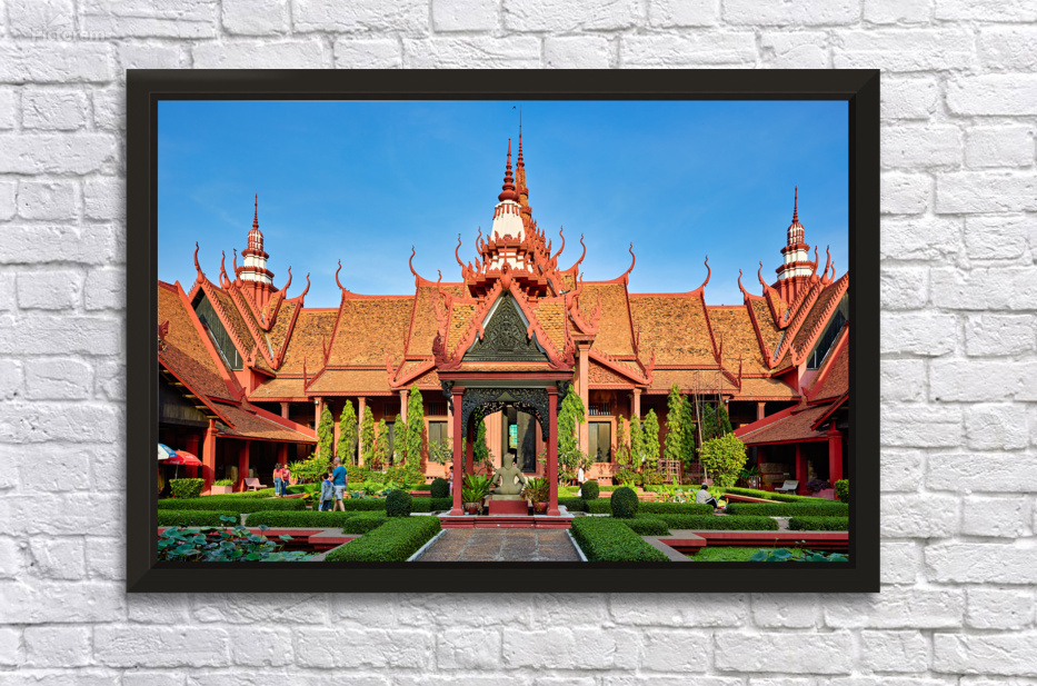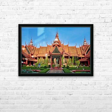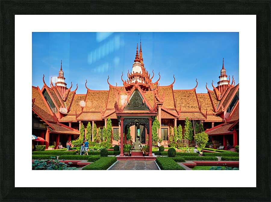 "National Museum of Cambodia: traditional architecture lush gard" in a framed print.