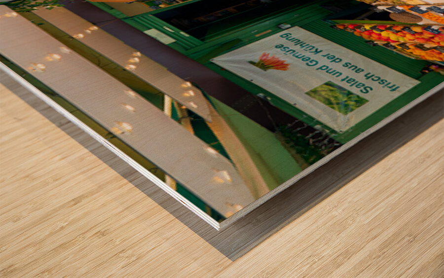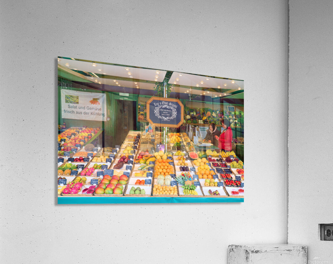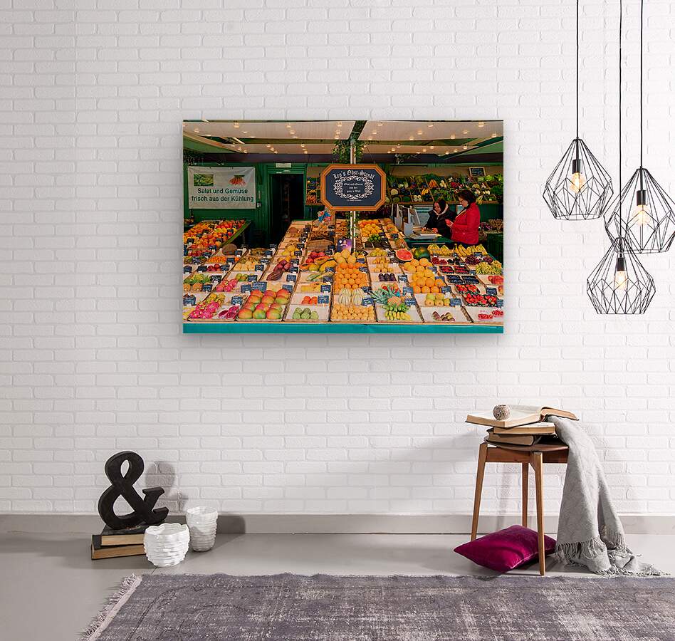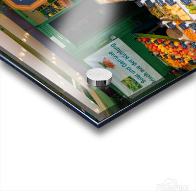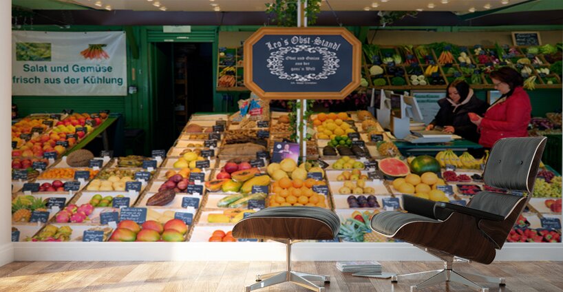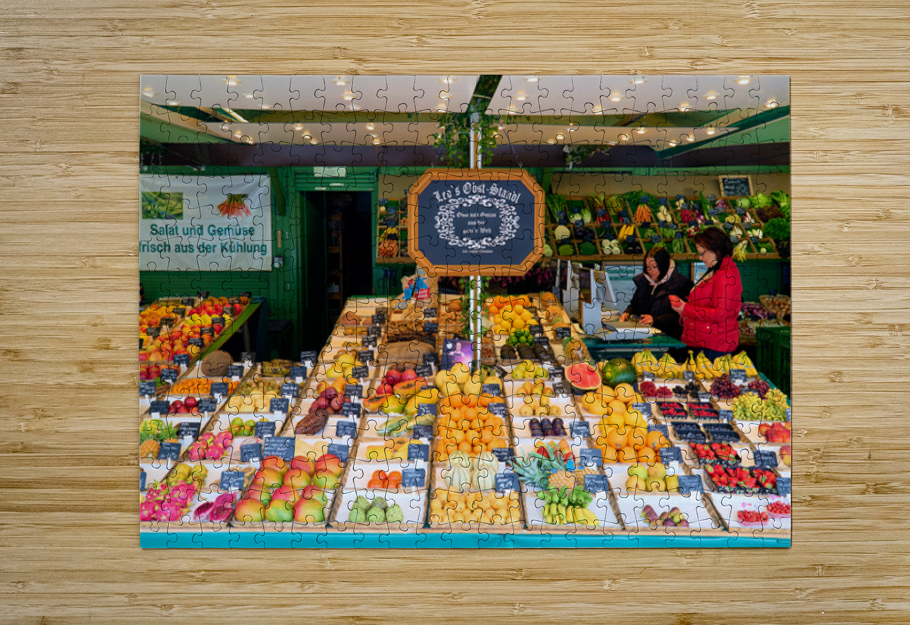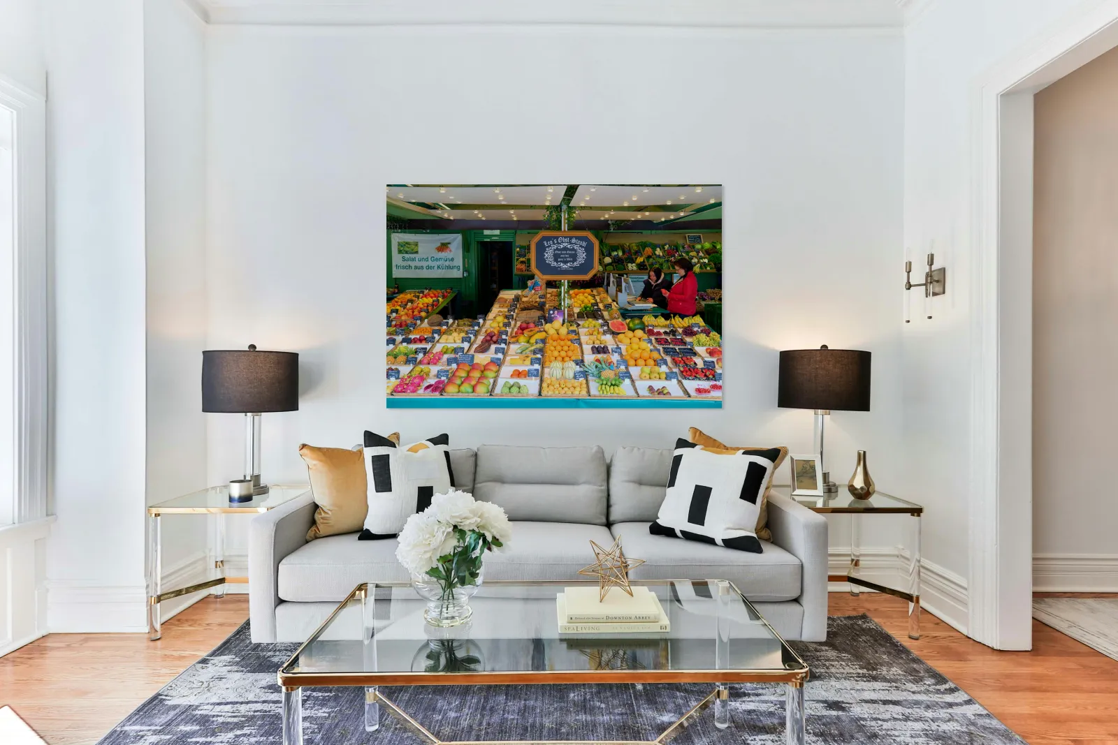 "Fresh produce stands at Viktualienmarkt in Munich Germany" in a framed print.