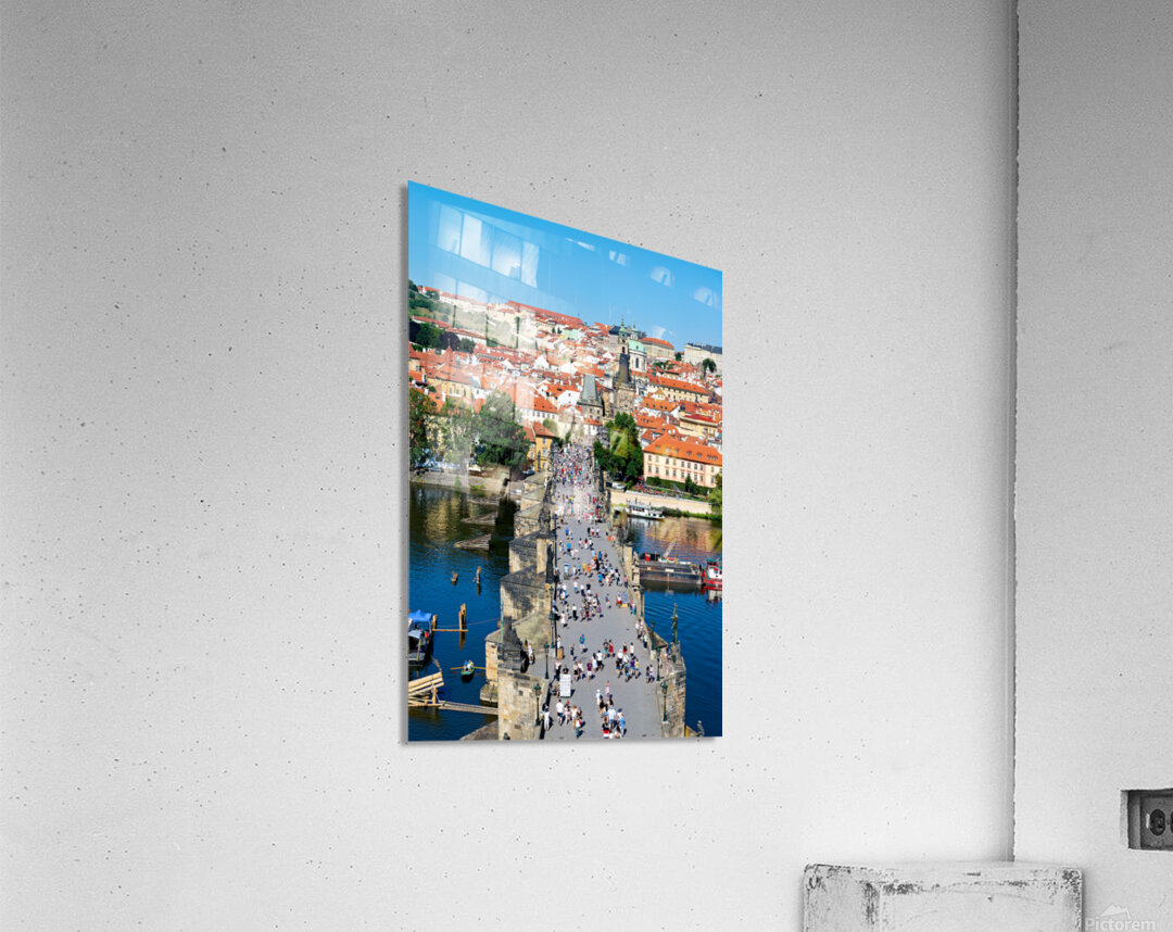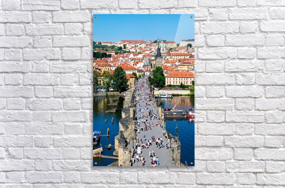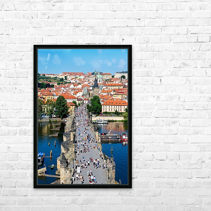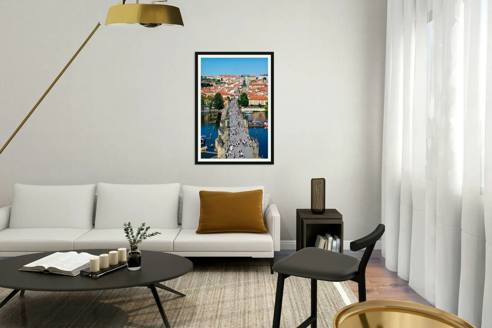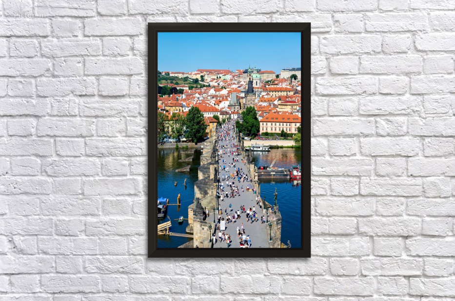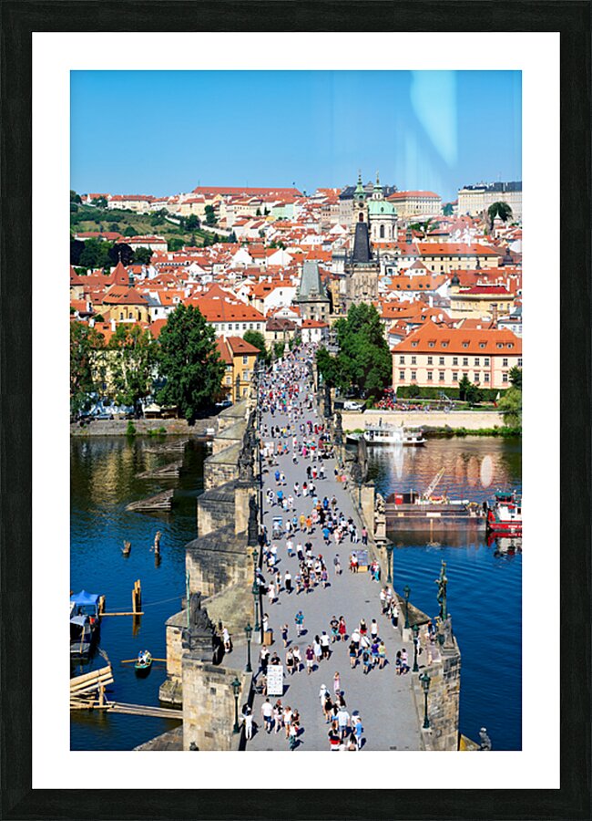 "Iconic Charles Bridge Prague teeming with tourists." in a framed print.