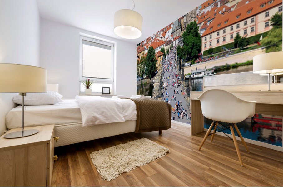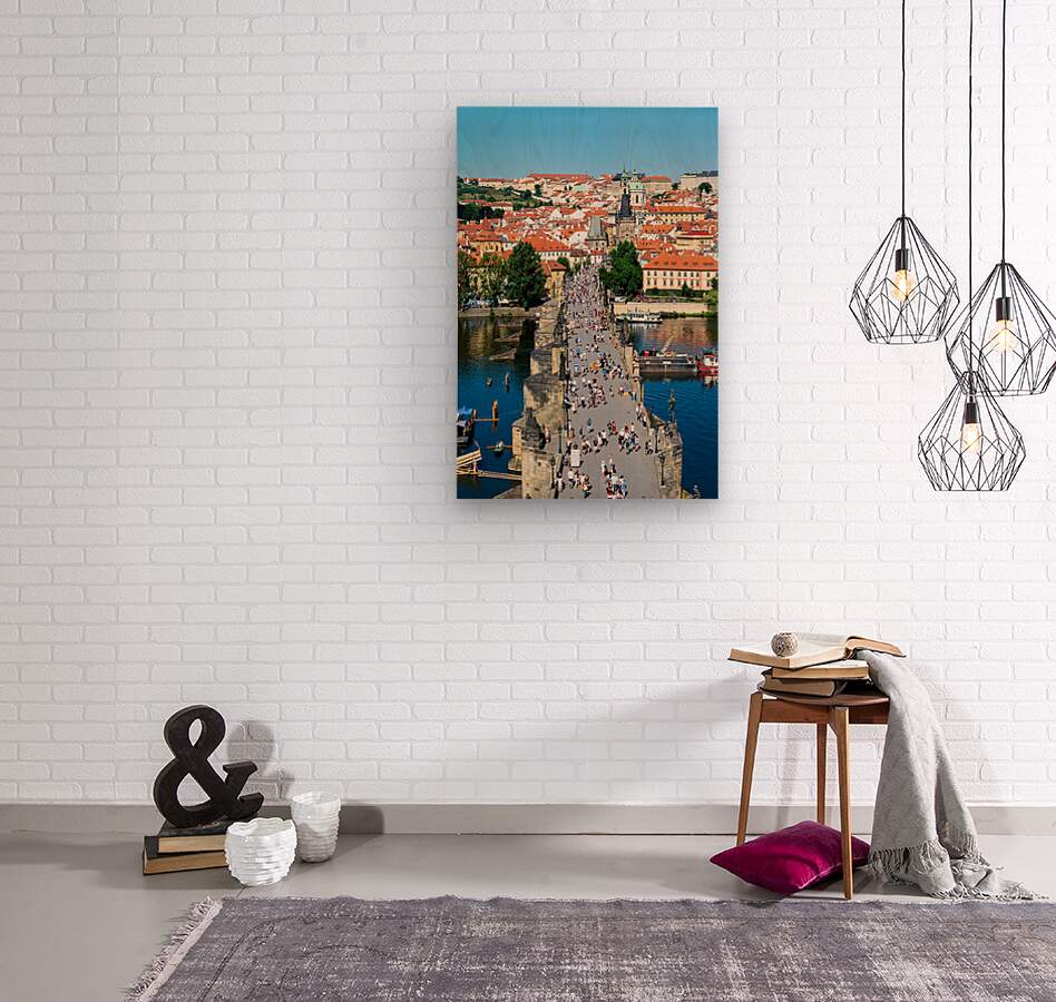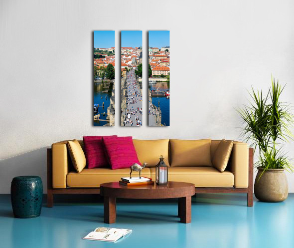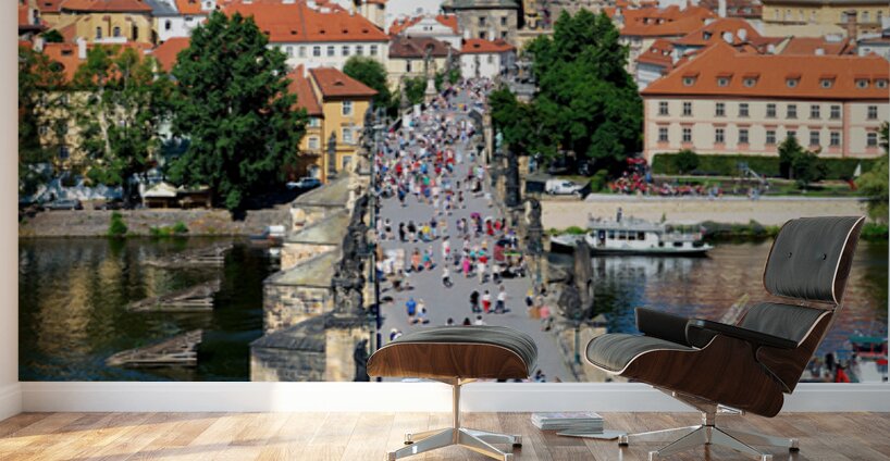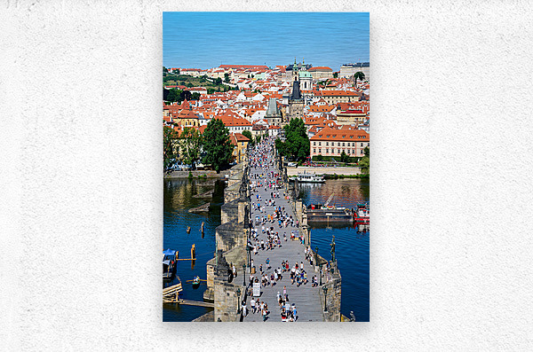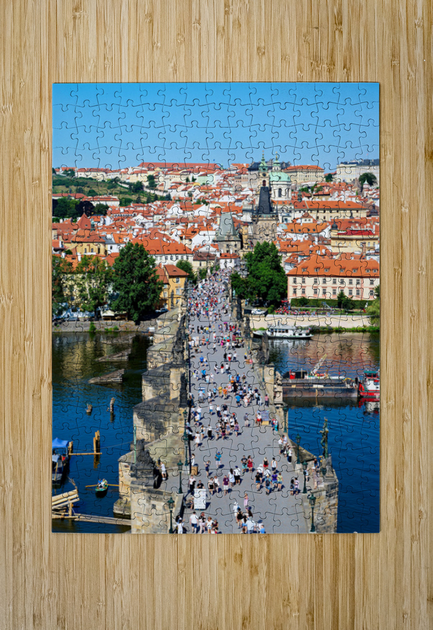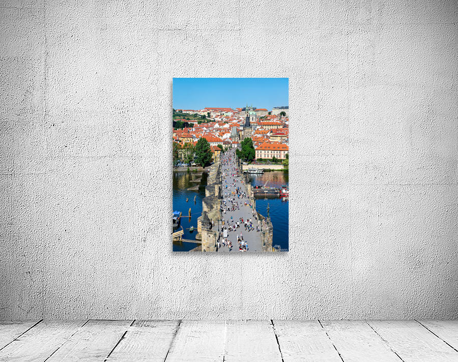 "Iconic Charles Bridge Prague teeming with tourists." in a framed print.