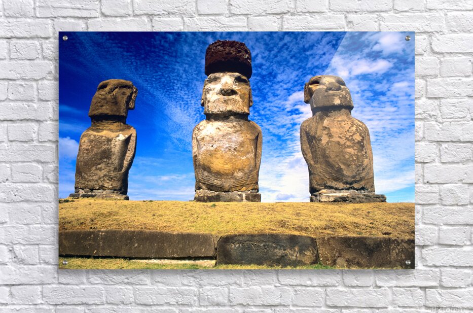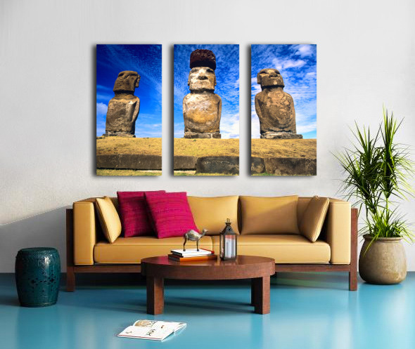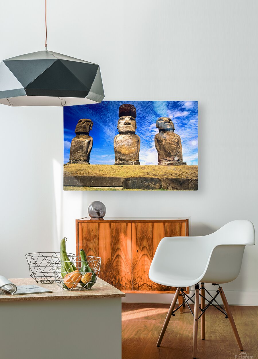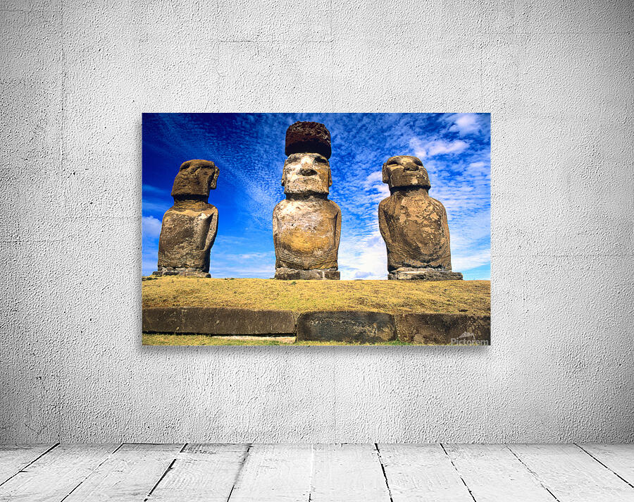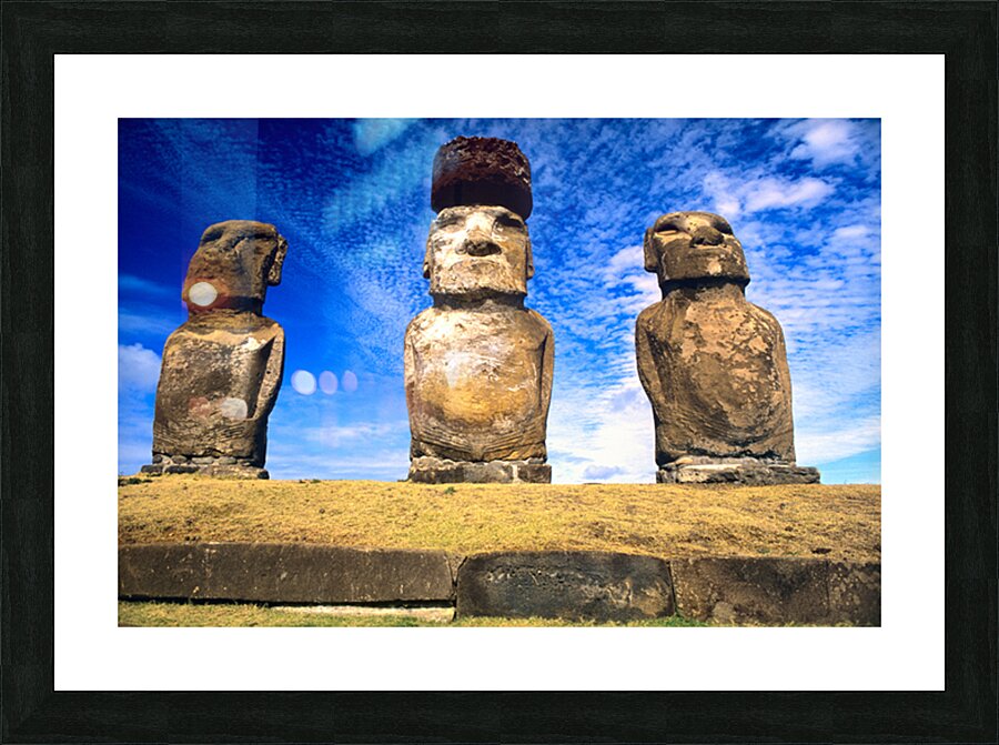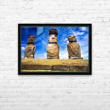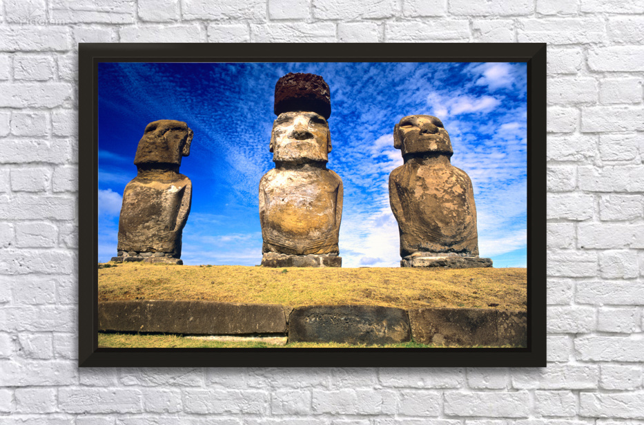 "Moai statues on Easter Island." in a framed print.