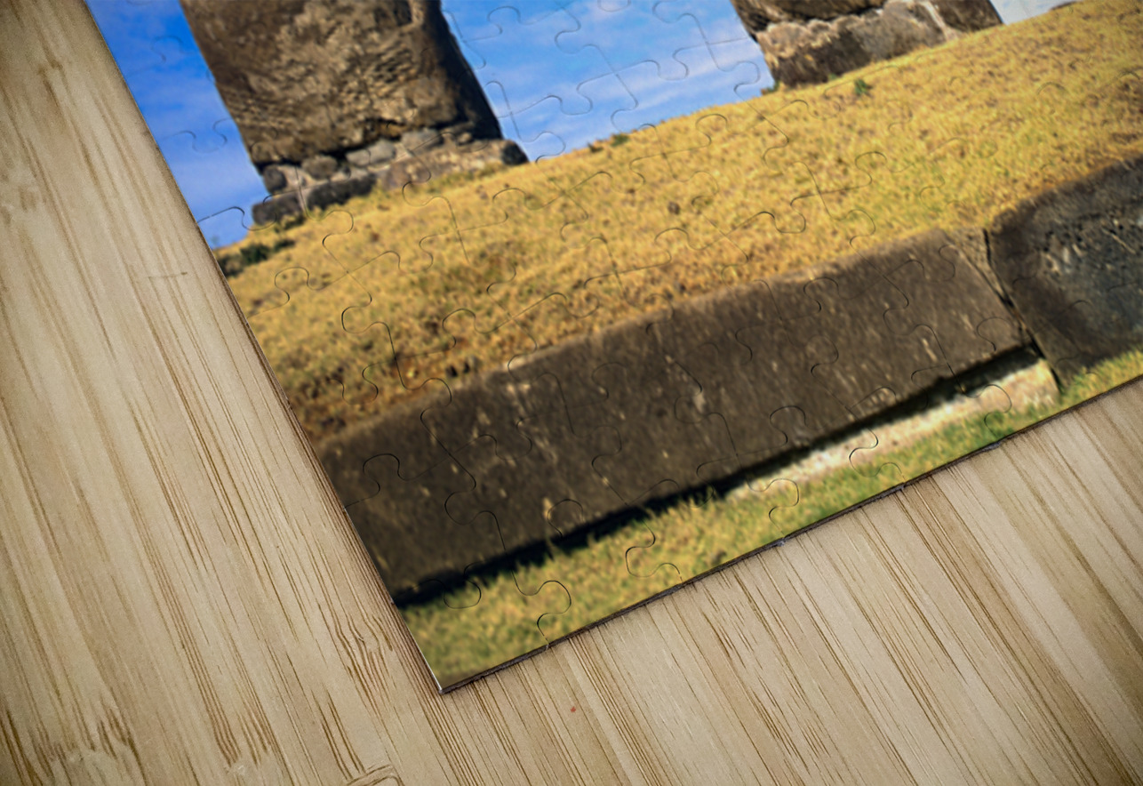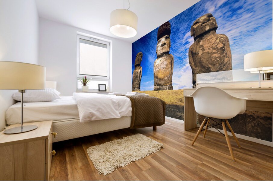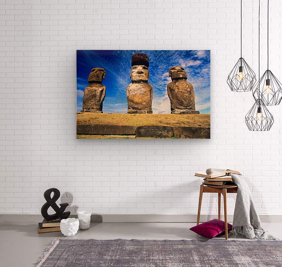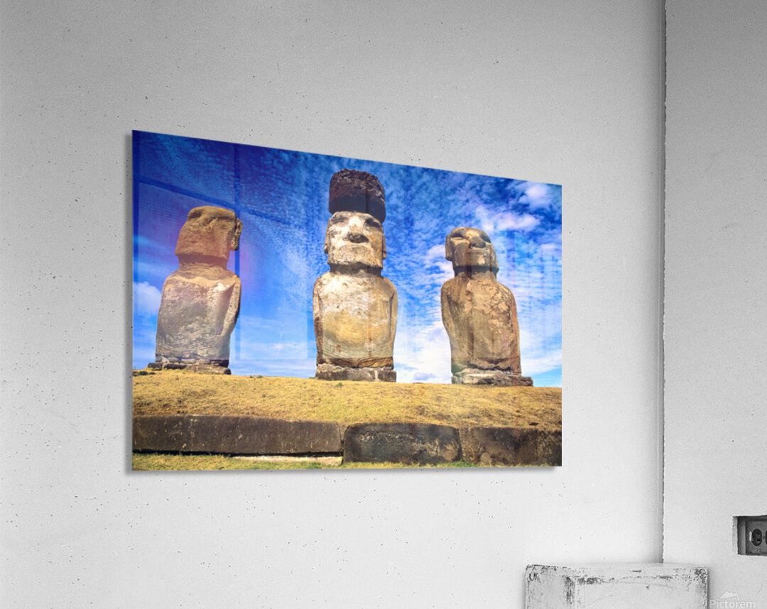 "Moai statues on Easter Island." in a framed print.