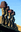 "Moai statues with red topknots on Easter Island." in a framed print.